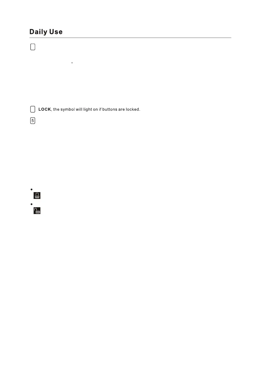 To activate the function, press and hold LOCK 3s for about 3 seconds. The lock indicator light