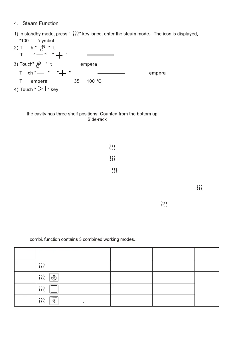 When oven is under standby mode, press " " key add steam for cooking. Steam level