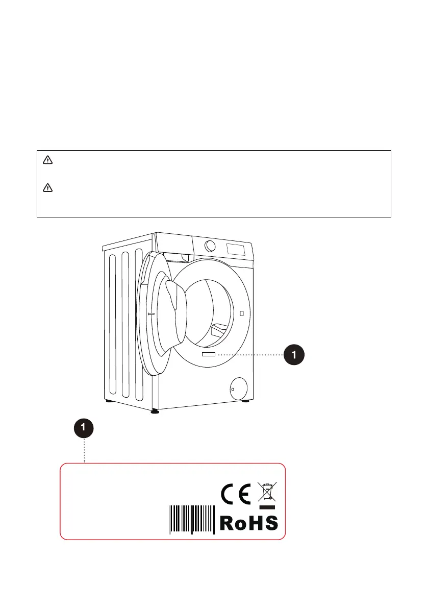 signalétique (type) située sur le côté avant du hublot du tambour.