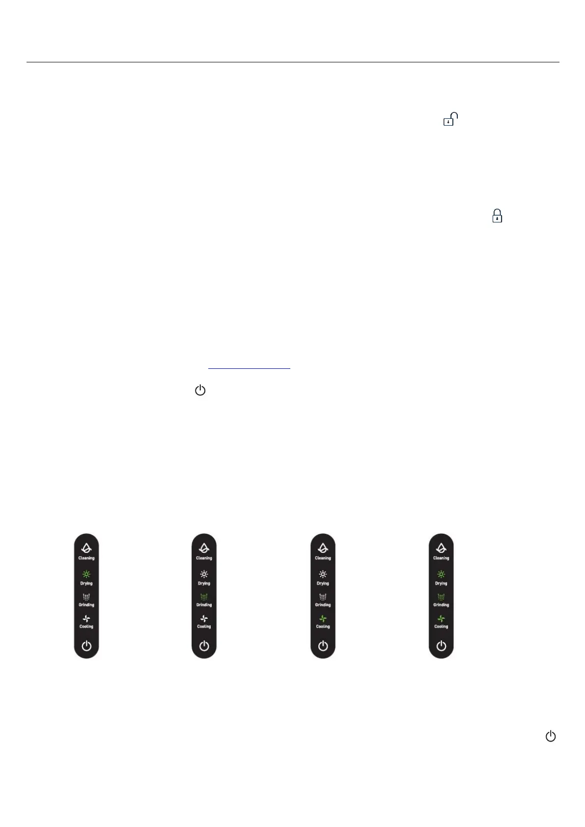 ACHTUNG: Wenn das Gerät nicht verschlossen ist, blinkt die LED Beleuchtung des Ein-/Ausschalters und erklingt