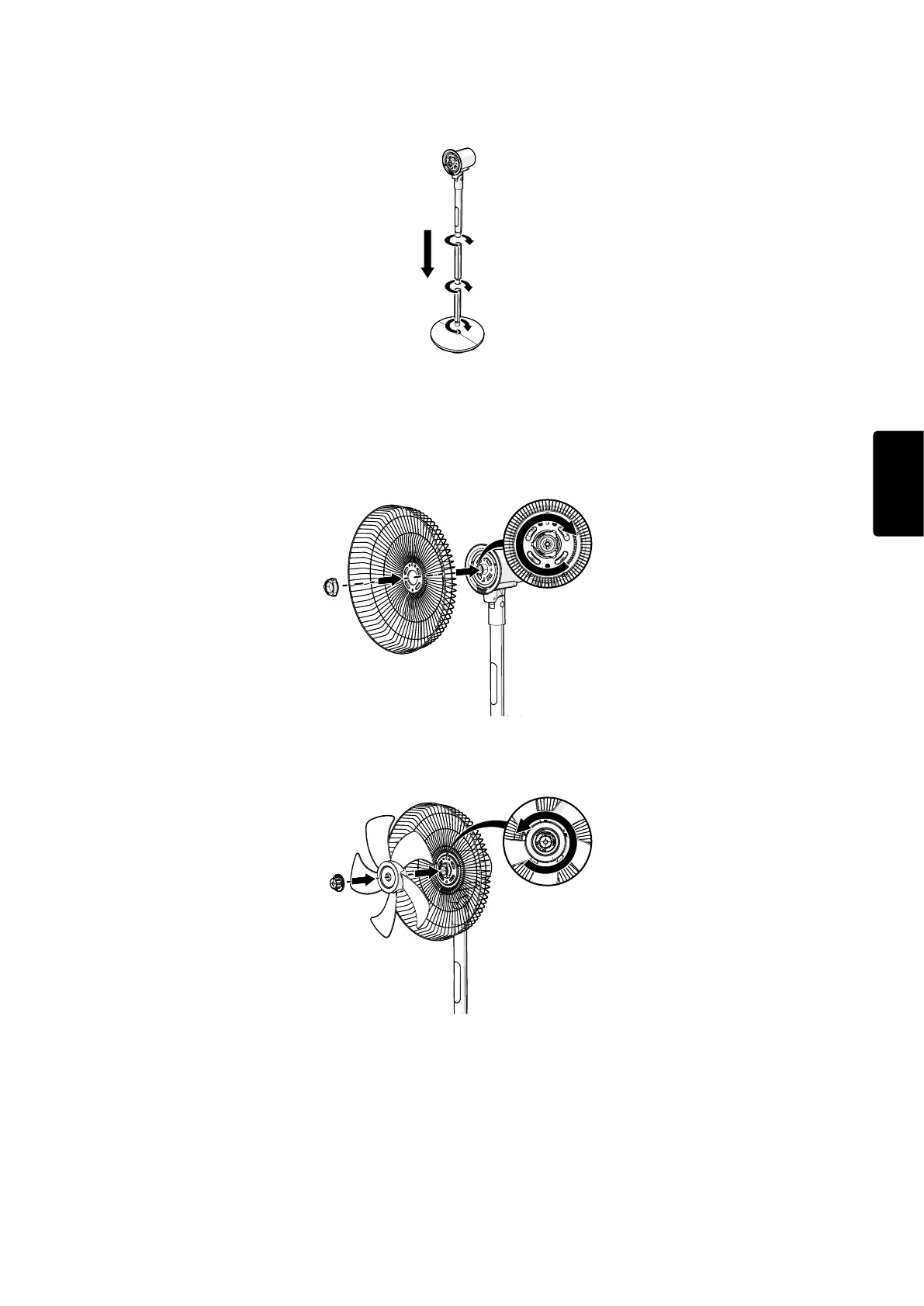 3. Serrez le moteur de ventilateur dans le sens des aiguilles d’une montre dans l’allonge supérieure.