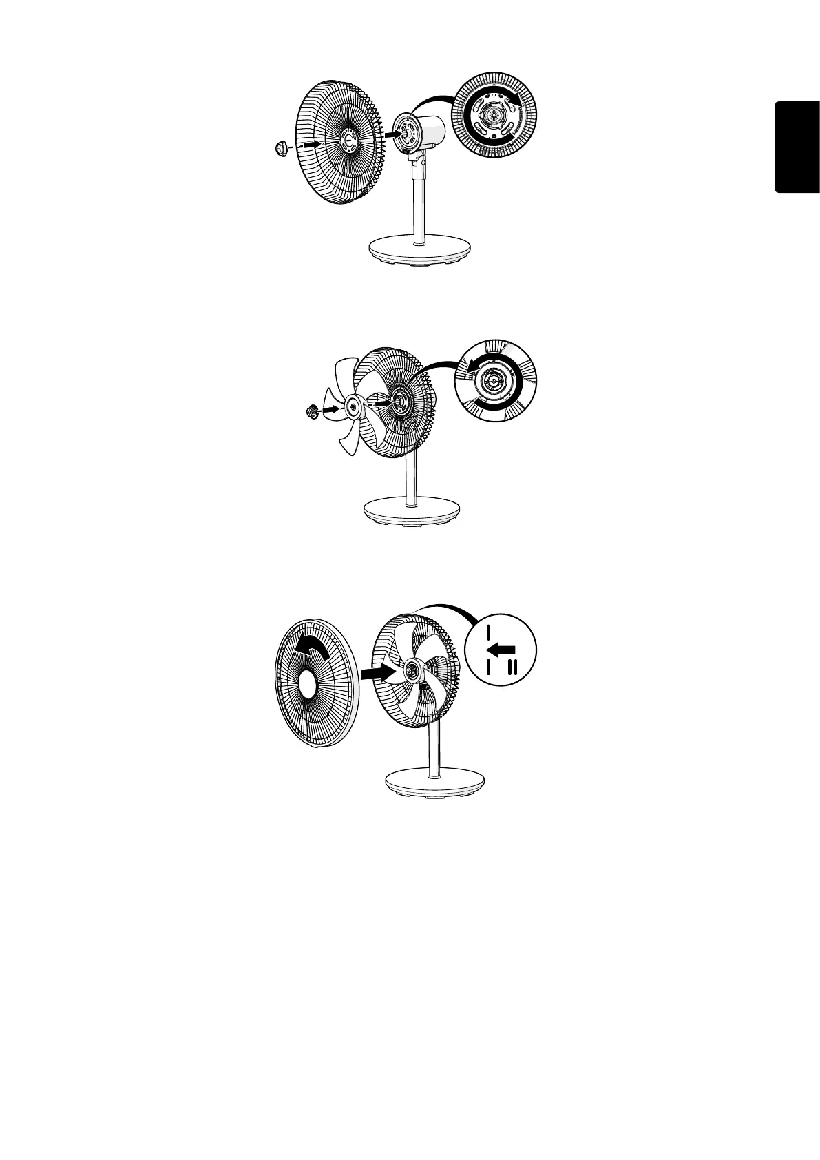 5. Houd de achterste beschermkap vast en draai de beschermkapmoer met de klok mee vast de ventilatormotor.