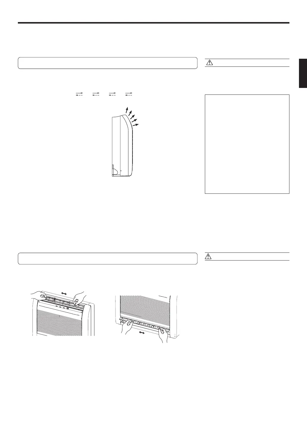Whenever making horizontal airfl ow adjustments, start air conditioner operation and be sure that the vertical air direction louvers are