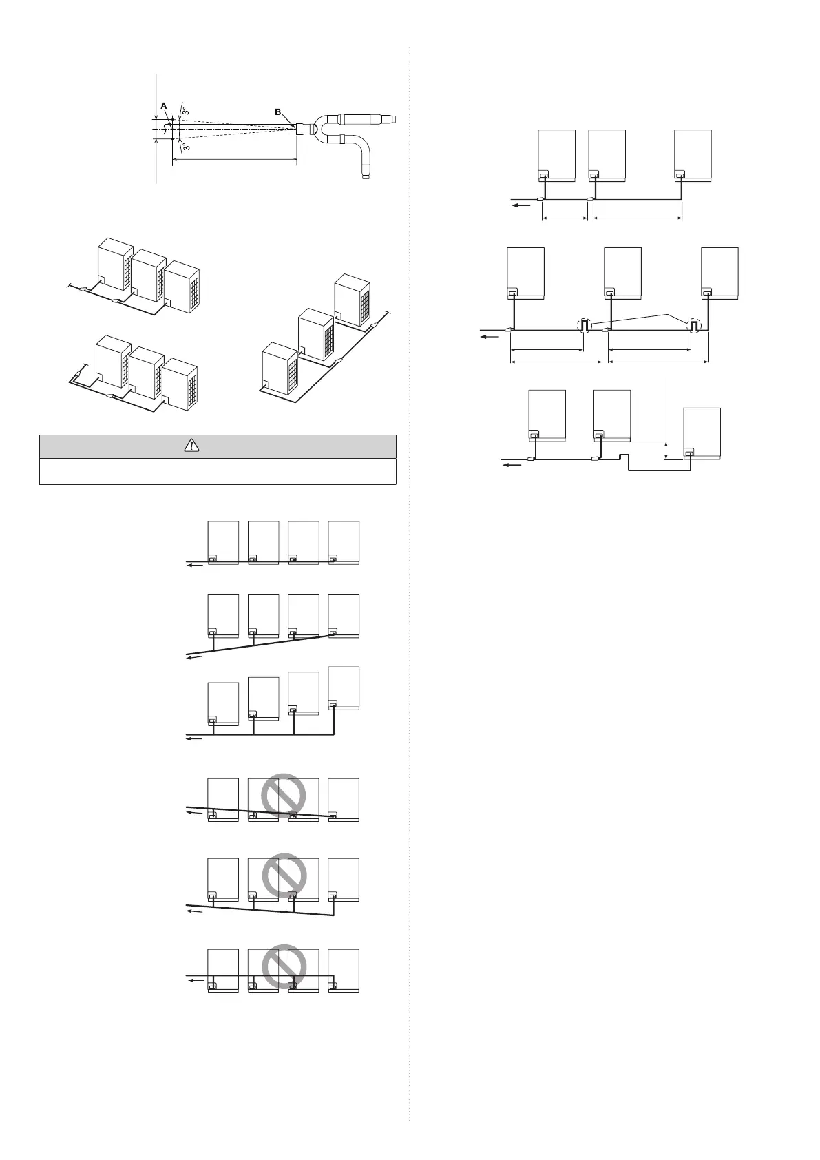 To prevent the oil from settling in the stopped unit, install the pipes between the outdoor