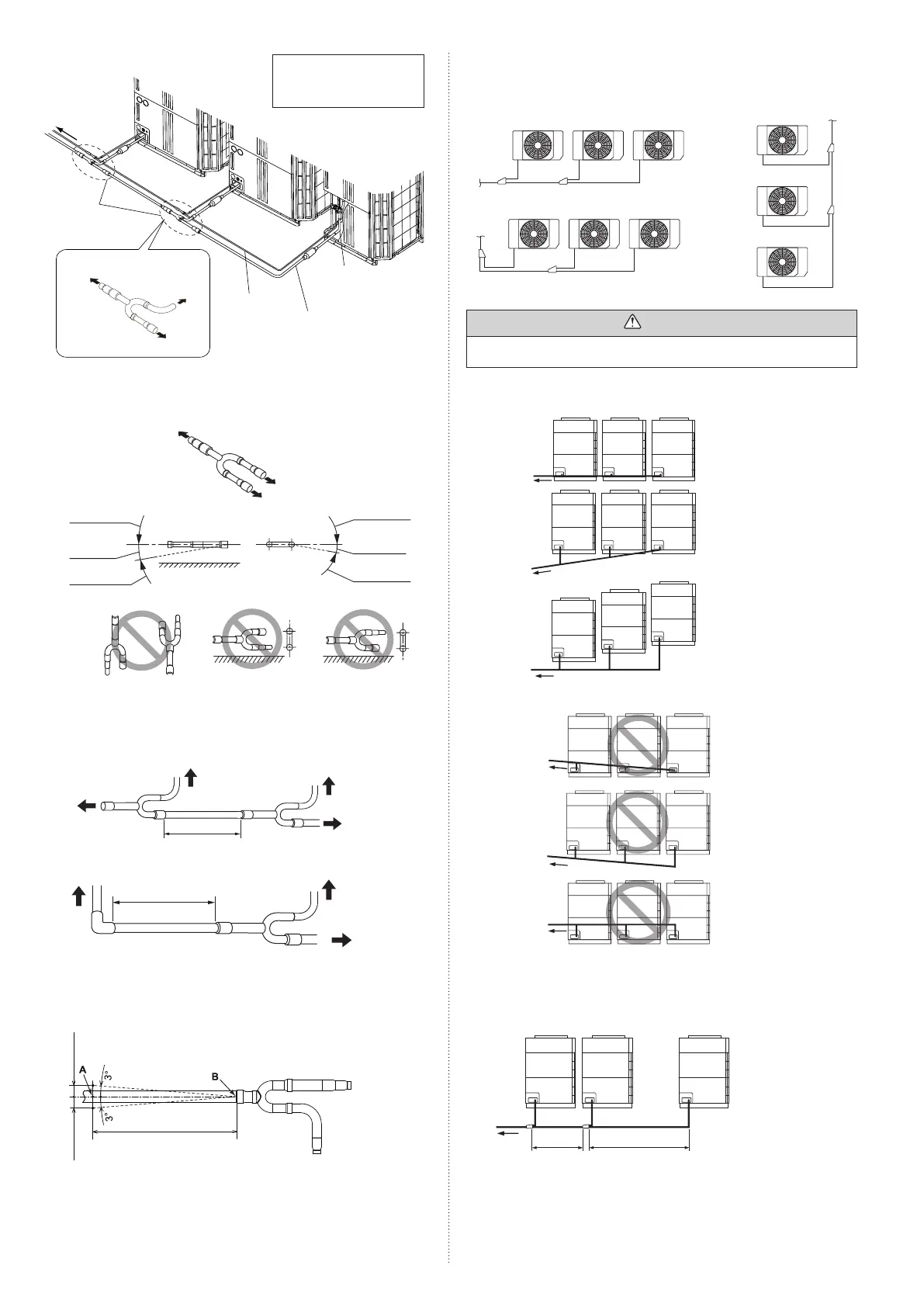 To prevent the oil from settling in the stopped unit, install the pipes between the