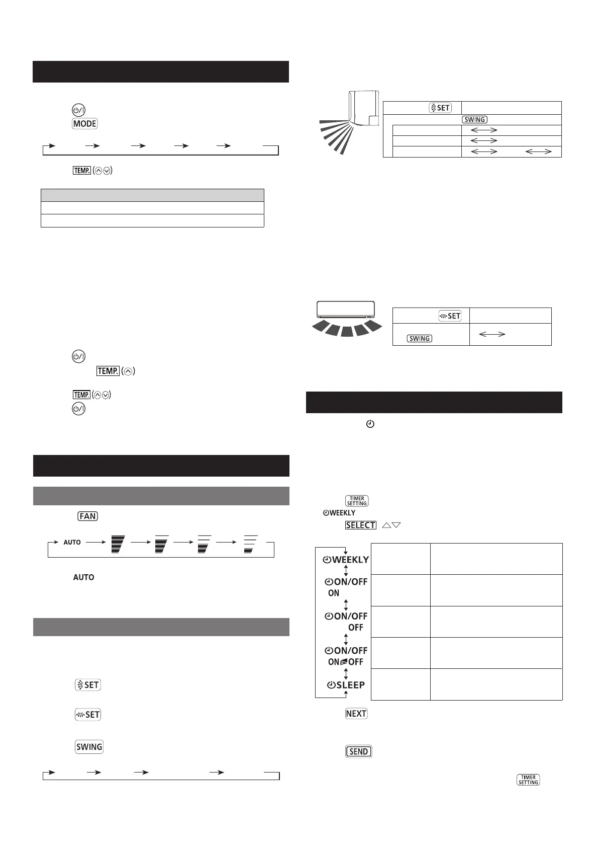 • In the Fan mode, temperature control is not available.