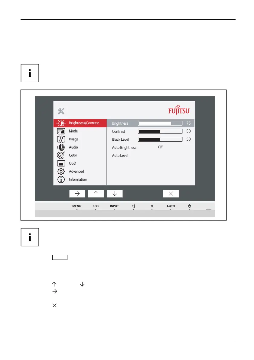 The first menu item ( Brightness/Contrast) is highlighted a nd the a ssociated