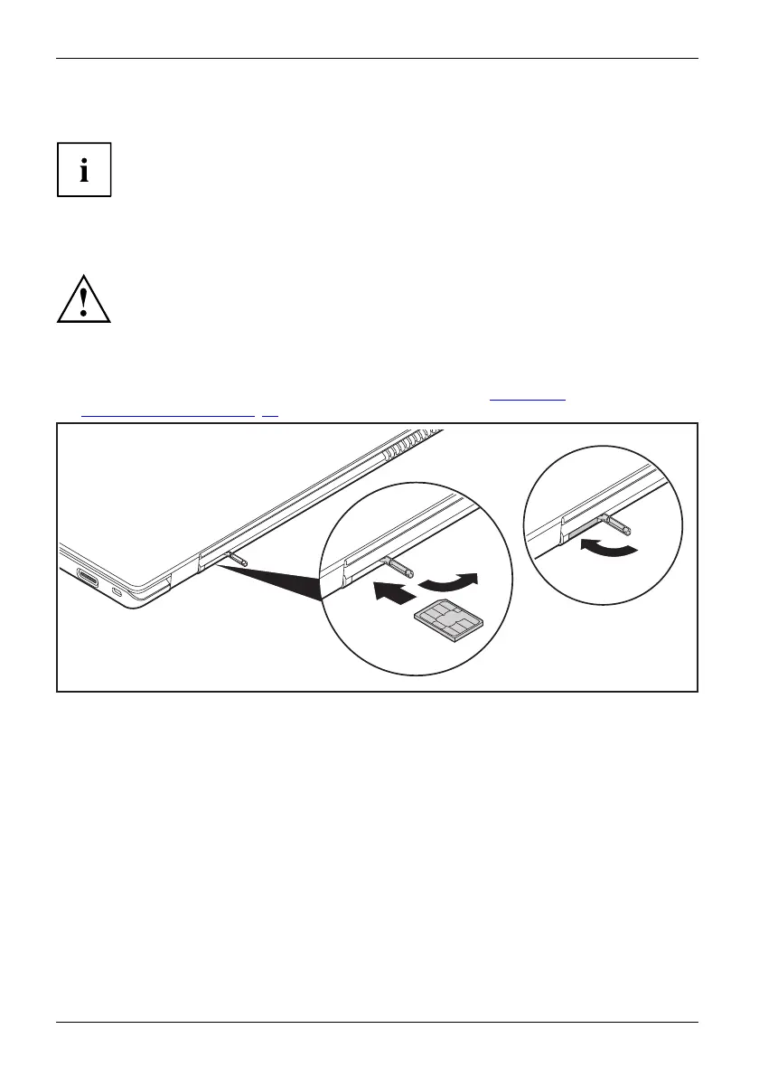 ► Slide the SIM card into the slot (2) with the metal con tact s facing upwards and as shown