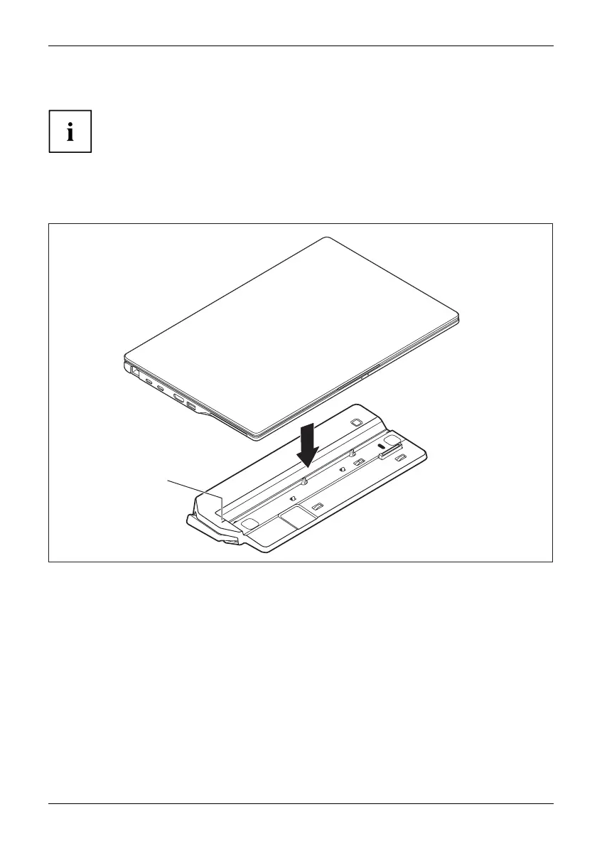 ► Place the notebook onto the Port Replicator (1) and ensure that it locks into place correctly.