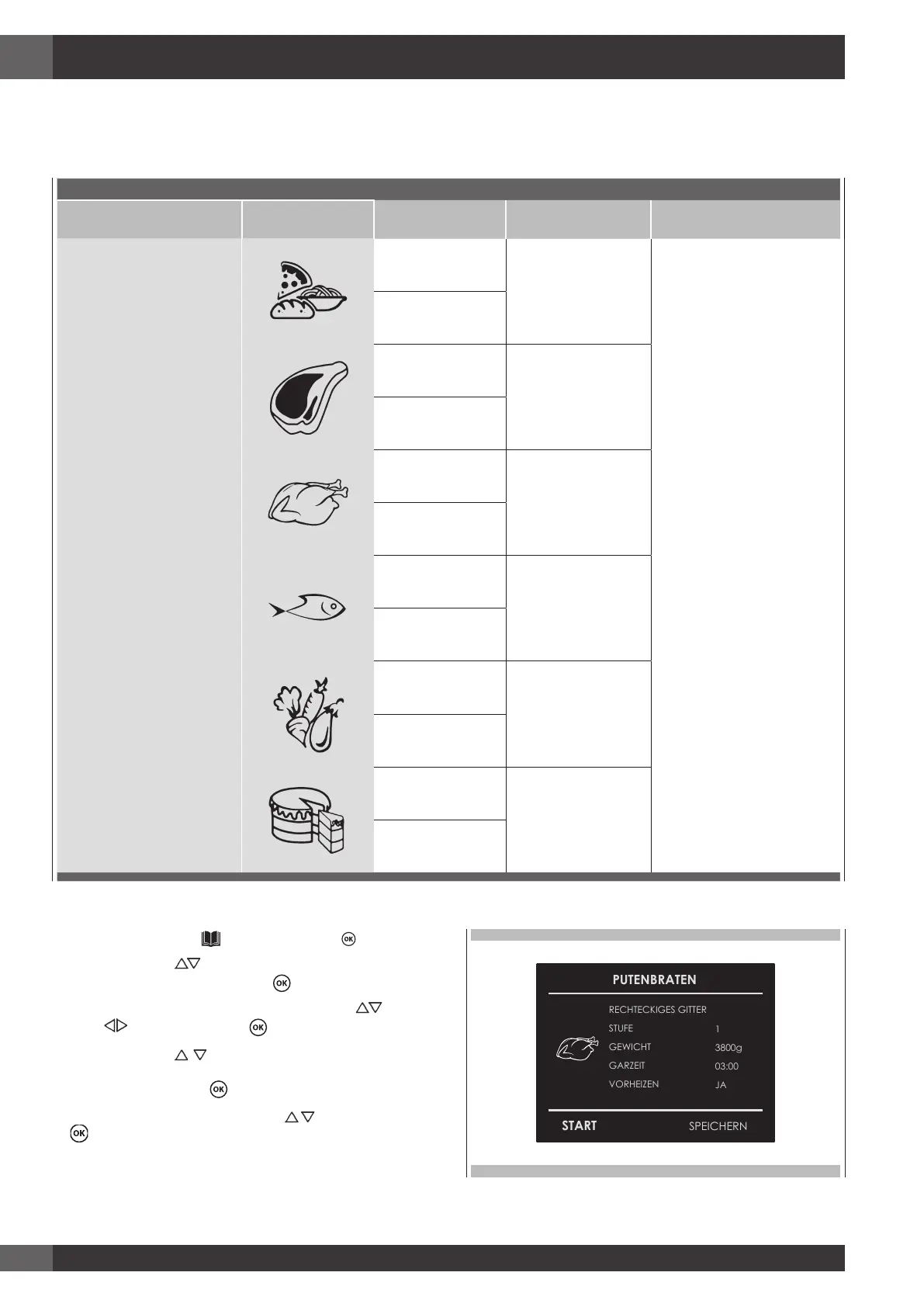 3. Art der vorzubereitenden Speise mithilfe der Pfeile
