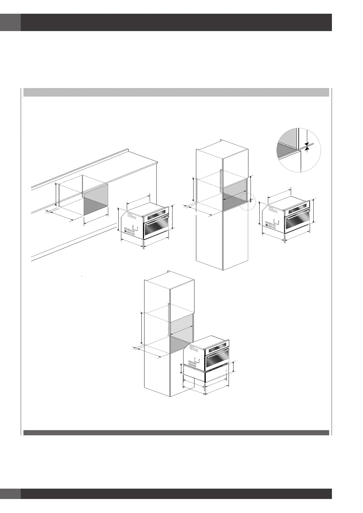 The oven must be installed under a cook top, in a column, or combined with the relative food-warmer drawer.