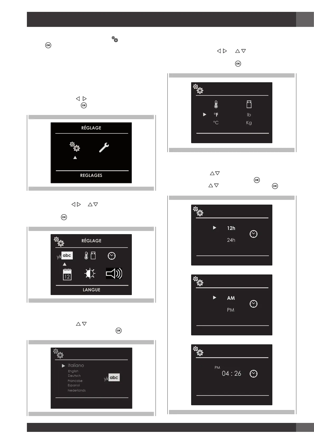 AM/PM ou 24h” , puis confirmer avec la touche . Ensuite, paramétrer