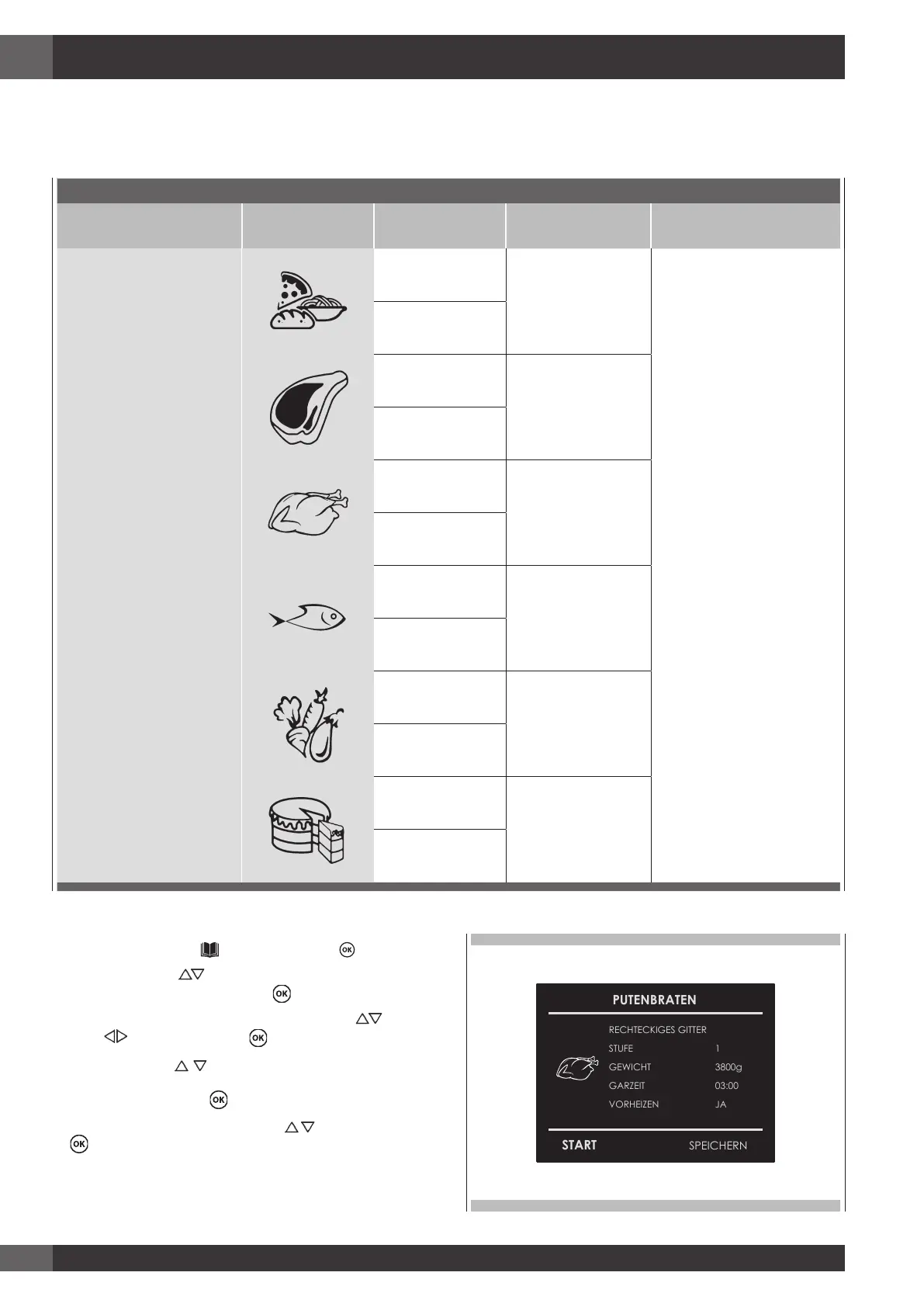 3. Art der vorzubereitenden Speise mithilfe der Pfeile