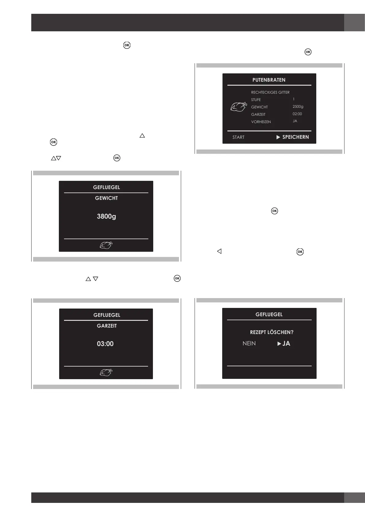 7. Um das Rezept zu bestätigen, mit Taste bestätigen.