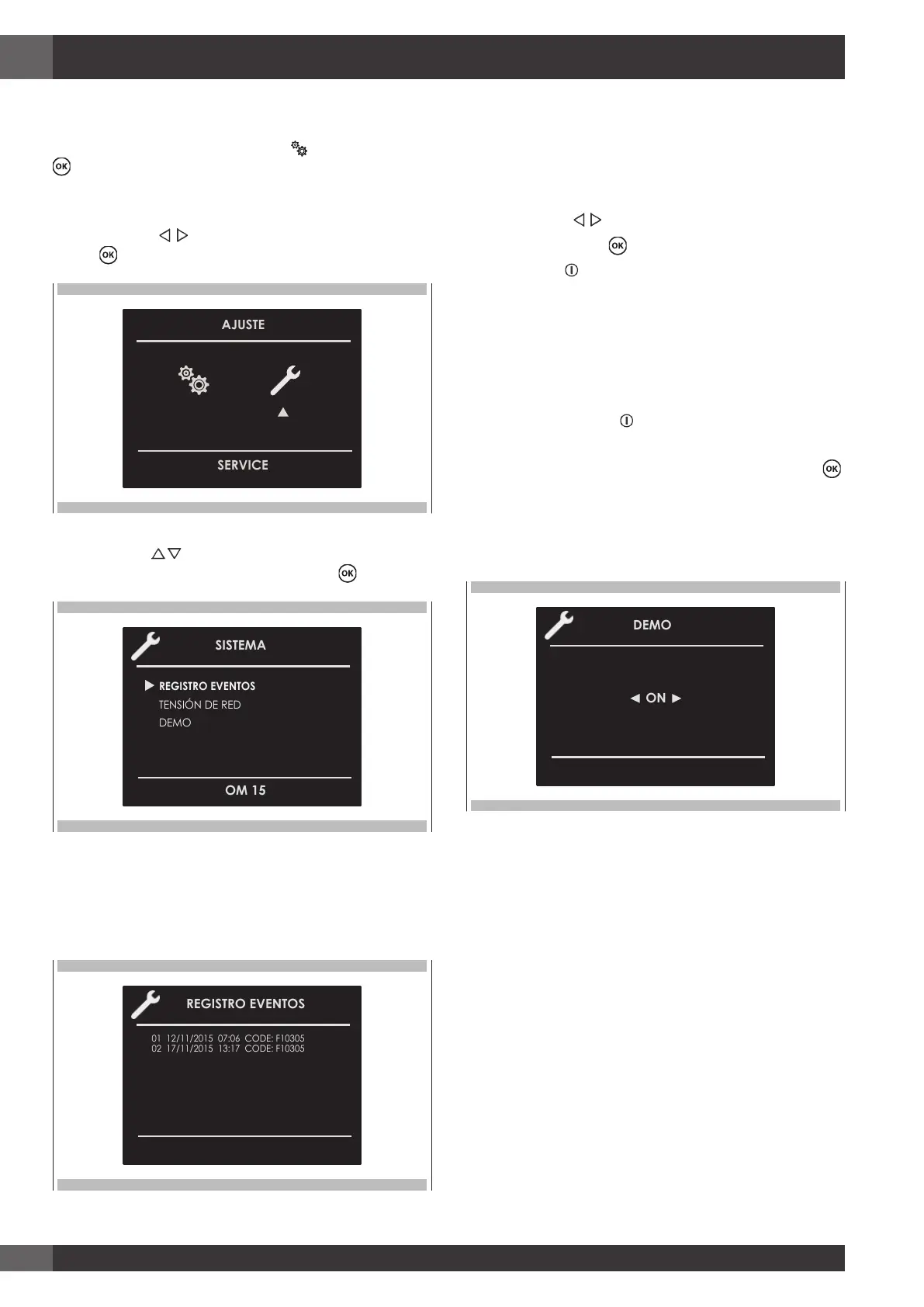 pantalla DEMOy configurar la opción OFF. Confirmar con la tecla
