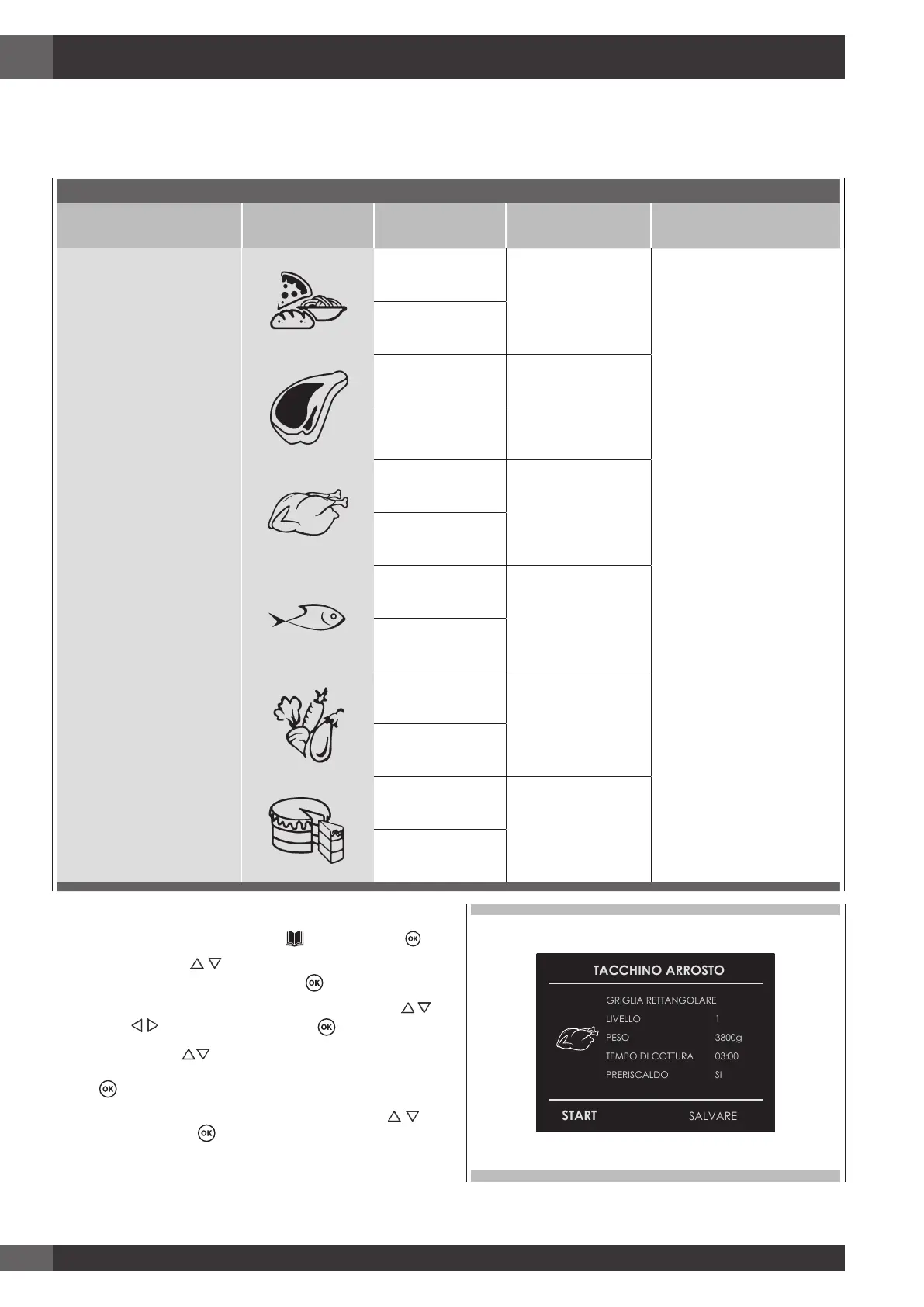 3. Scegliere il tipo di alimento da cuocere utilizzando le frecce