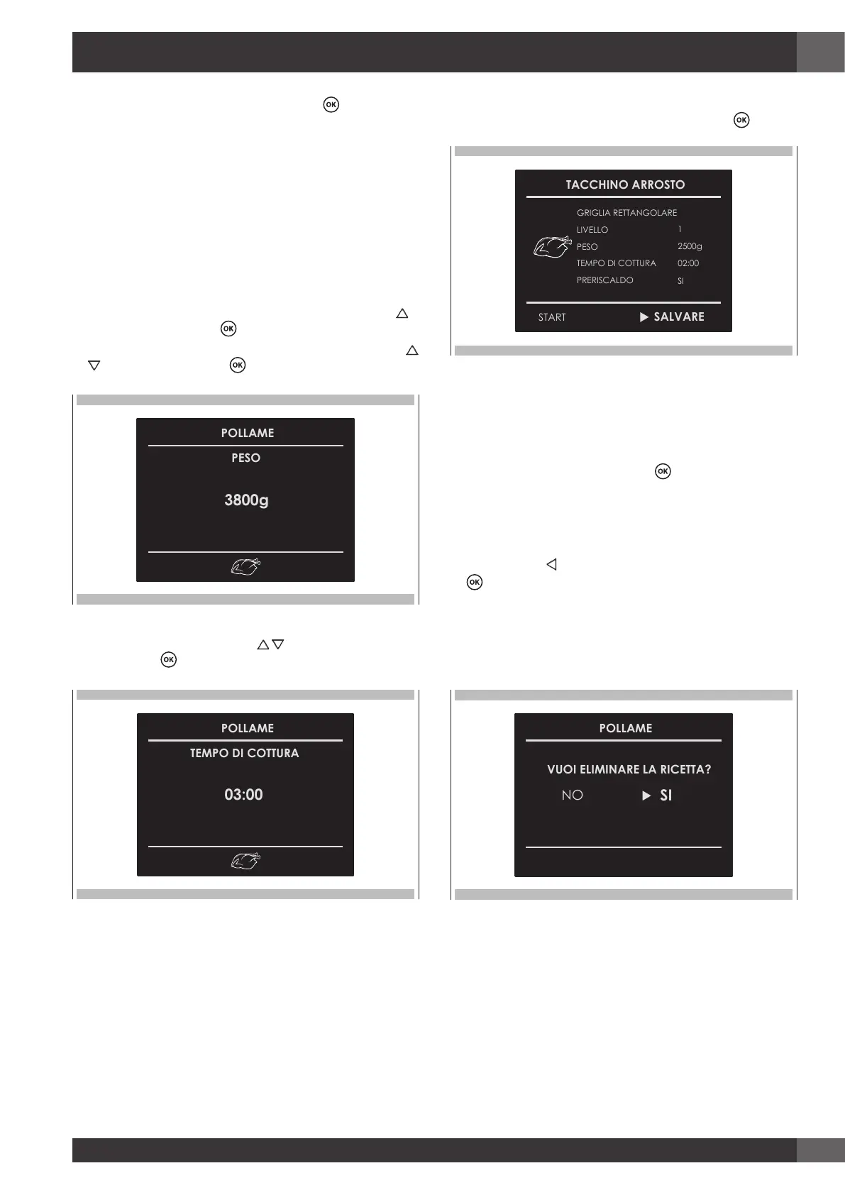 Durante una ricetta, una serie di messaggi sonori e visivi vi chiedono