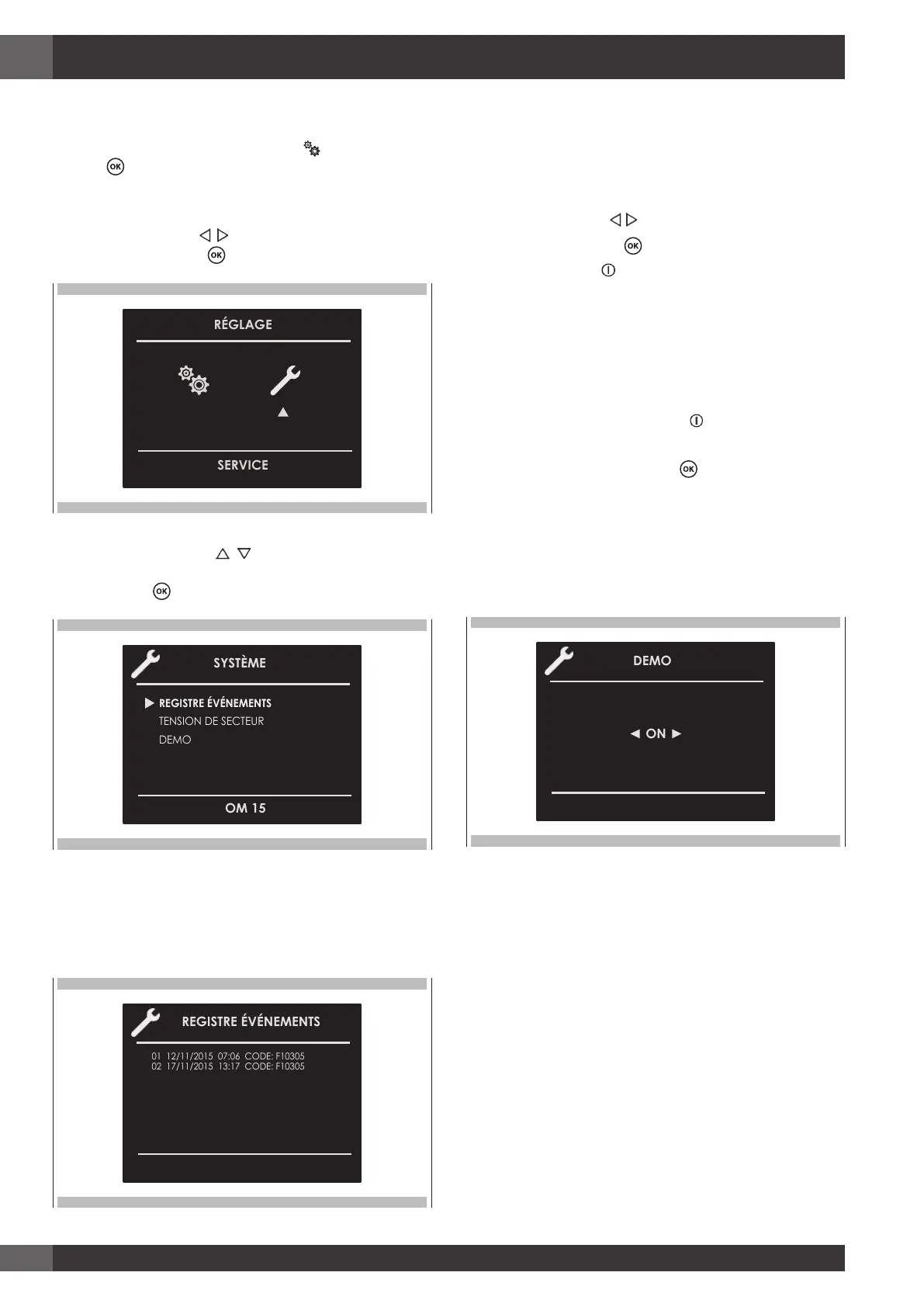 Ce menu permet de vérifier les erreurs enregistrées. Ces codes peuvent