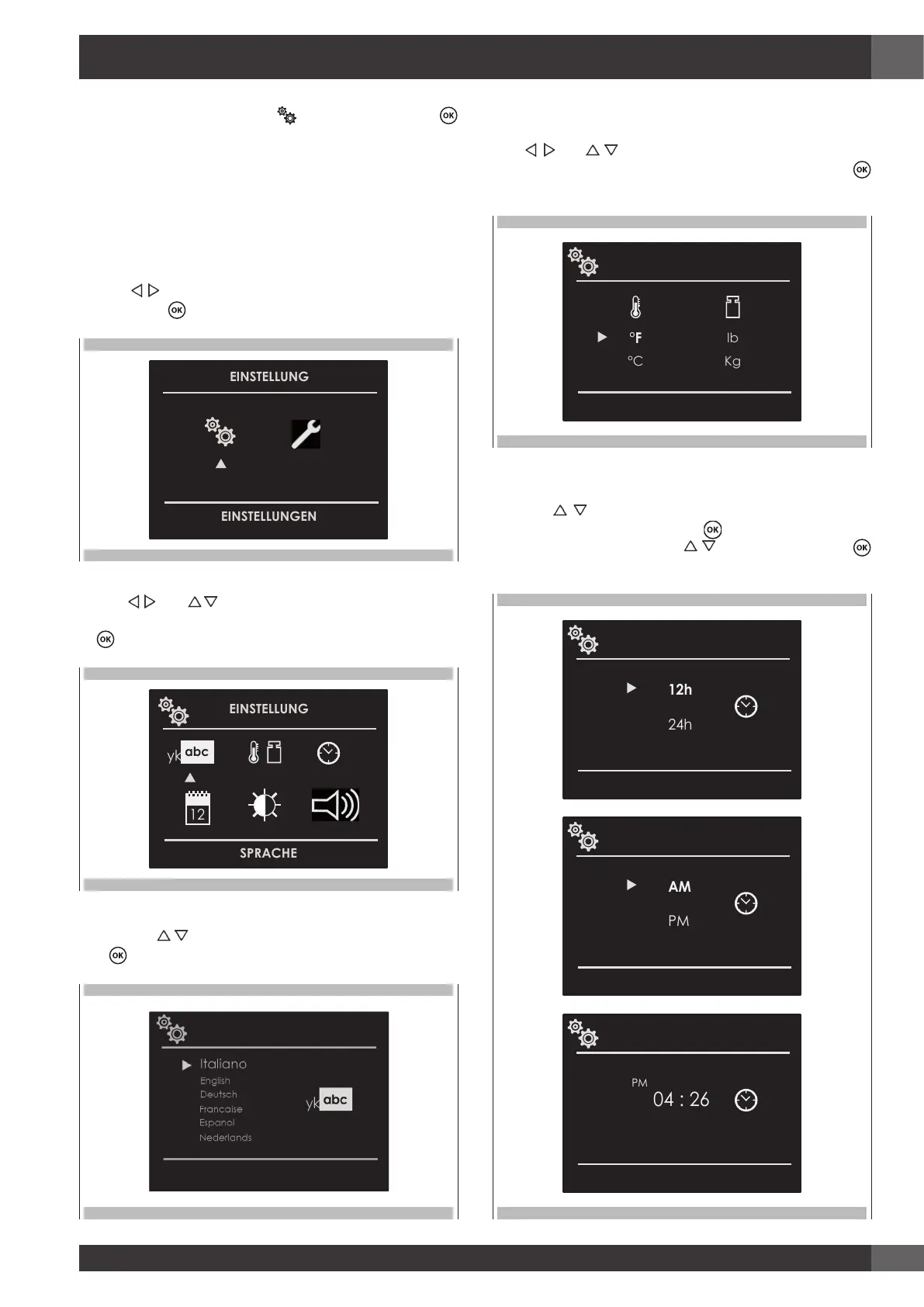 “°C/°F” oder Gewichtsmaße Kg/ib zu wählen und mit Taste