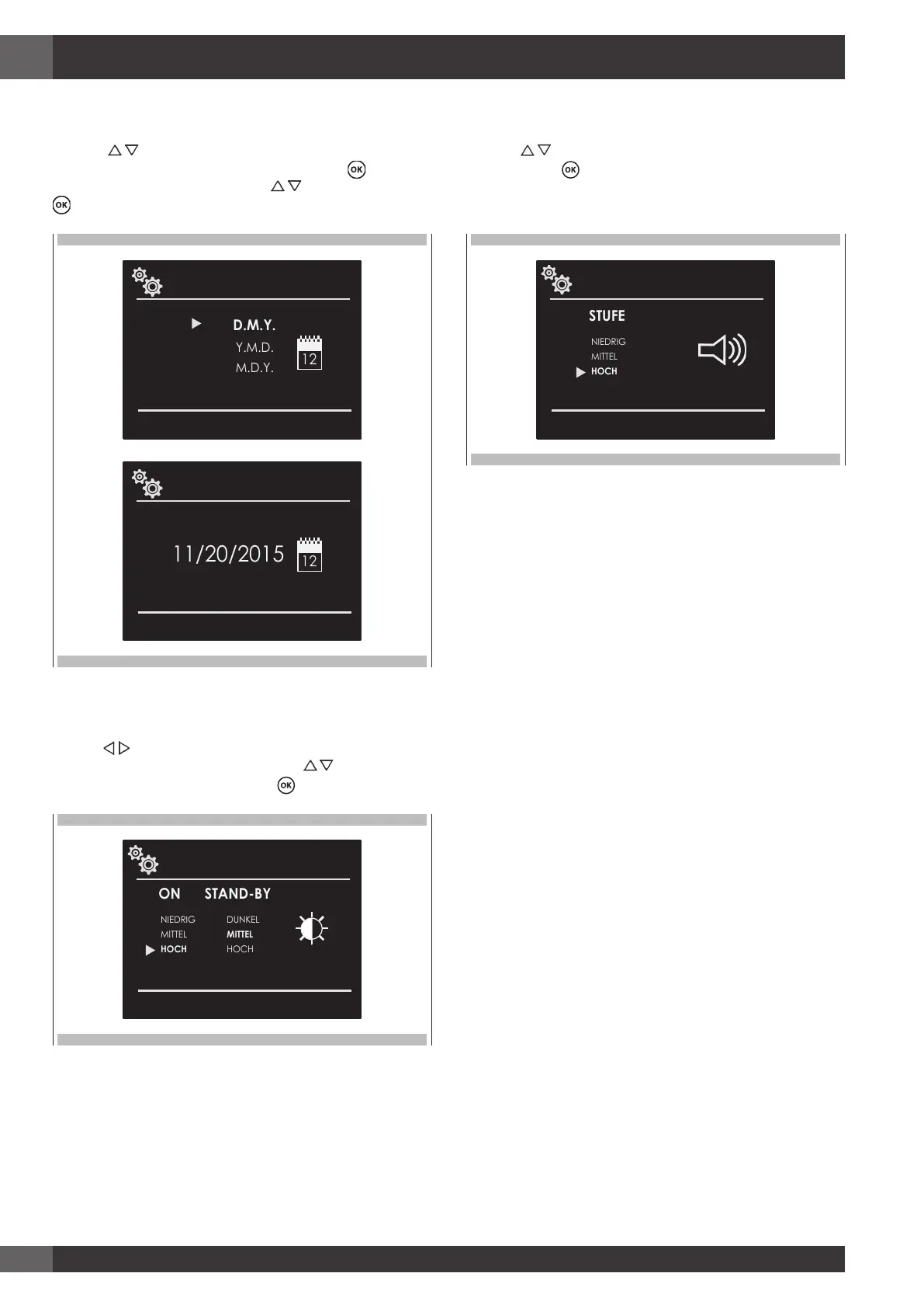 Helligkeitsgrad auswählen und mit Taste bestätigen.