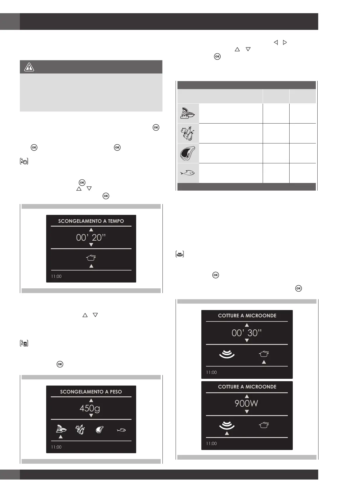 frecce e premendo il tasto , poi impostare lo scongelamento a