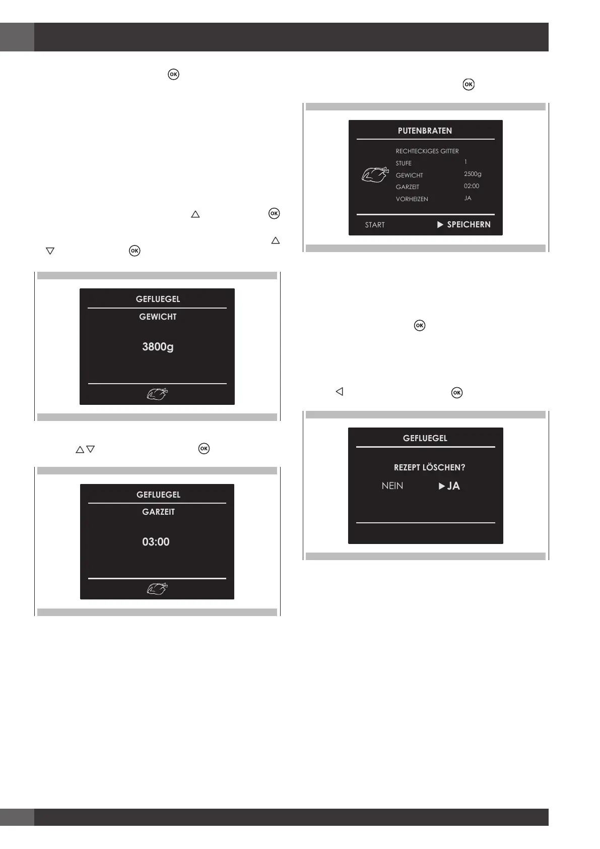 7. Um das Rezept zu bestätigen, mit Taste bestätigen.