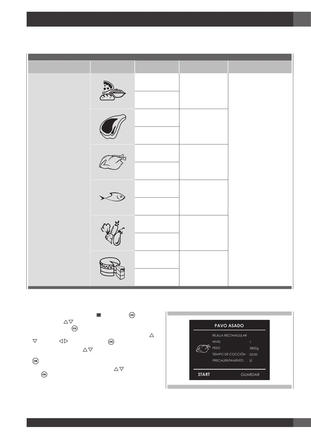 cocción, la temperatura y el tiempo quedan configurados automáticamente según la receta que p173-ha elegido en el menú.