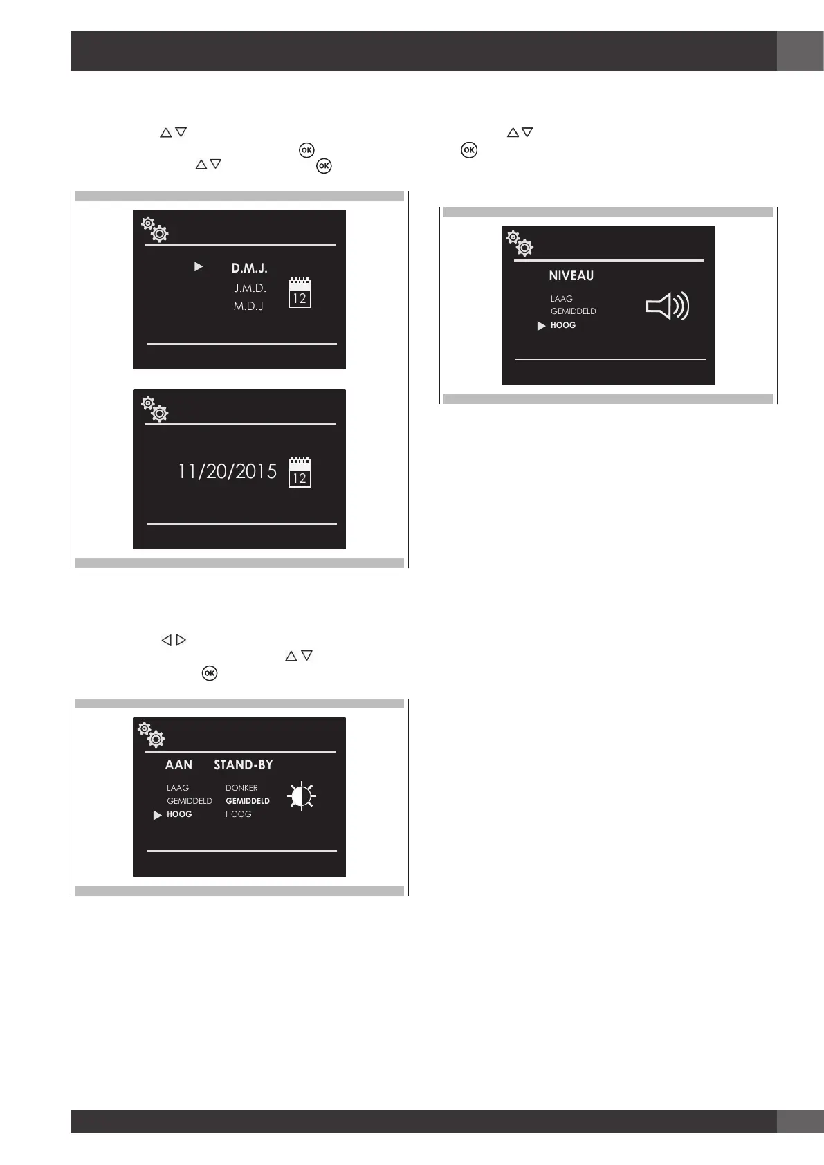 Druk op de pijltoets om de datumnotatie te selecteren uit de volgende