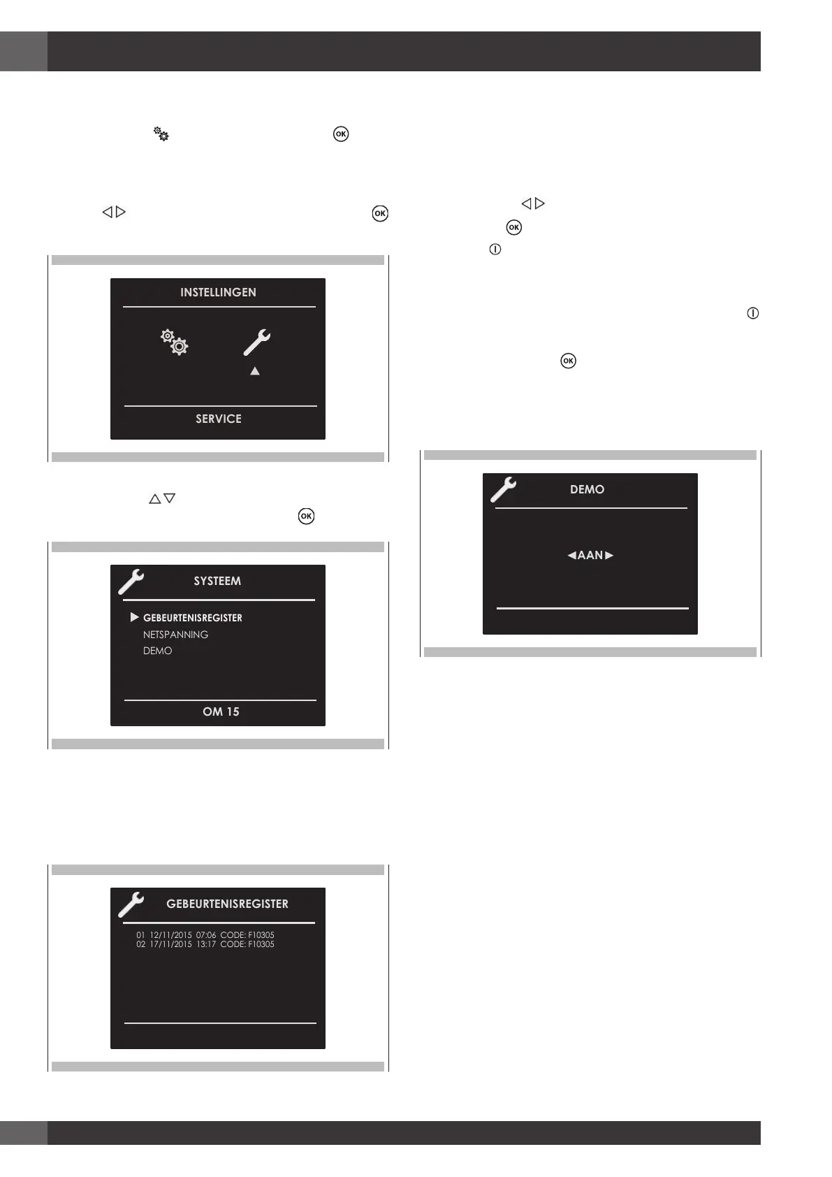 Om de stand uit te schakelen, gaat u naar de DEMO schermpagina en