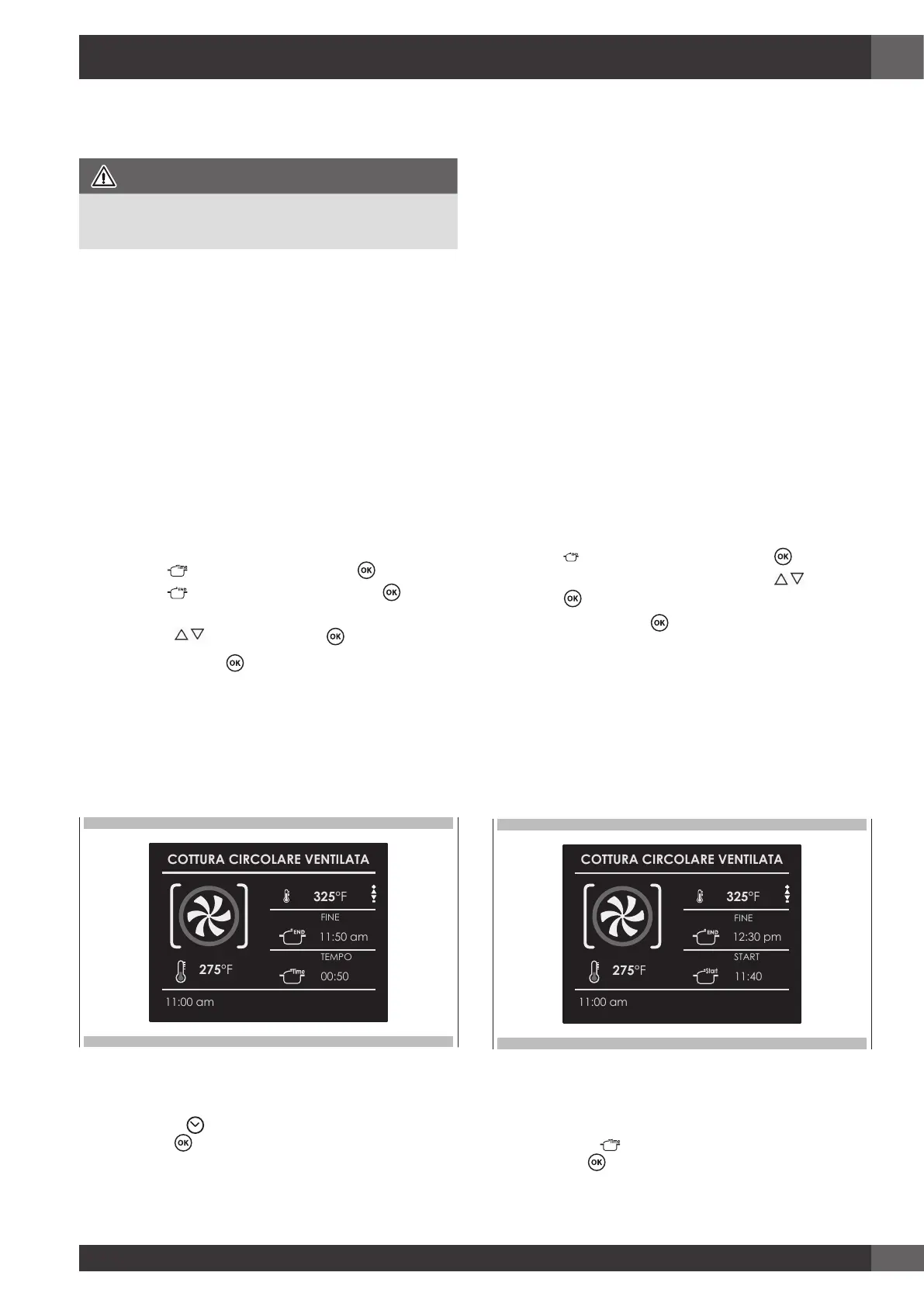 Inserire l'ora di fine cottura e il forno calcolerà in automatico l'ora di avvio. Il