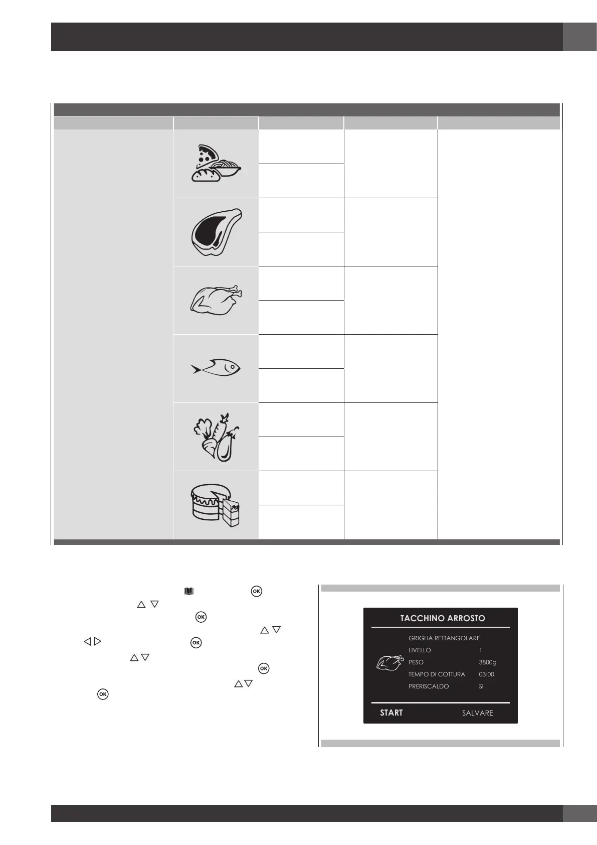 3. Scegliere il tipo di alimento da cuocere utilizzando le frecce