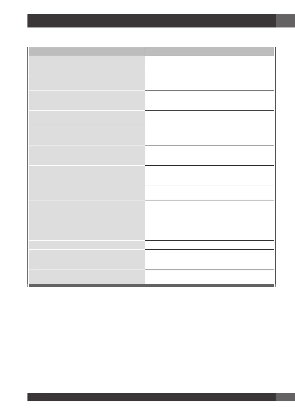 L’éclairage du four ne s’éteint pas Vérifiez si rien n’obstrue la port du four. Vérifiez si la charnière n’est pas pliée ou que