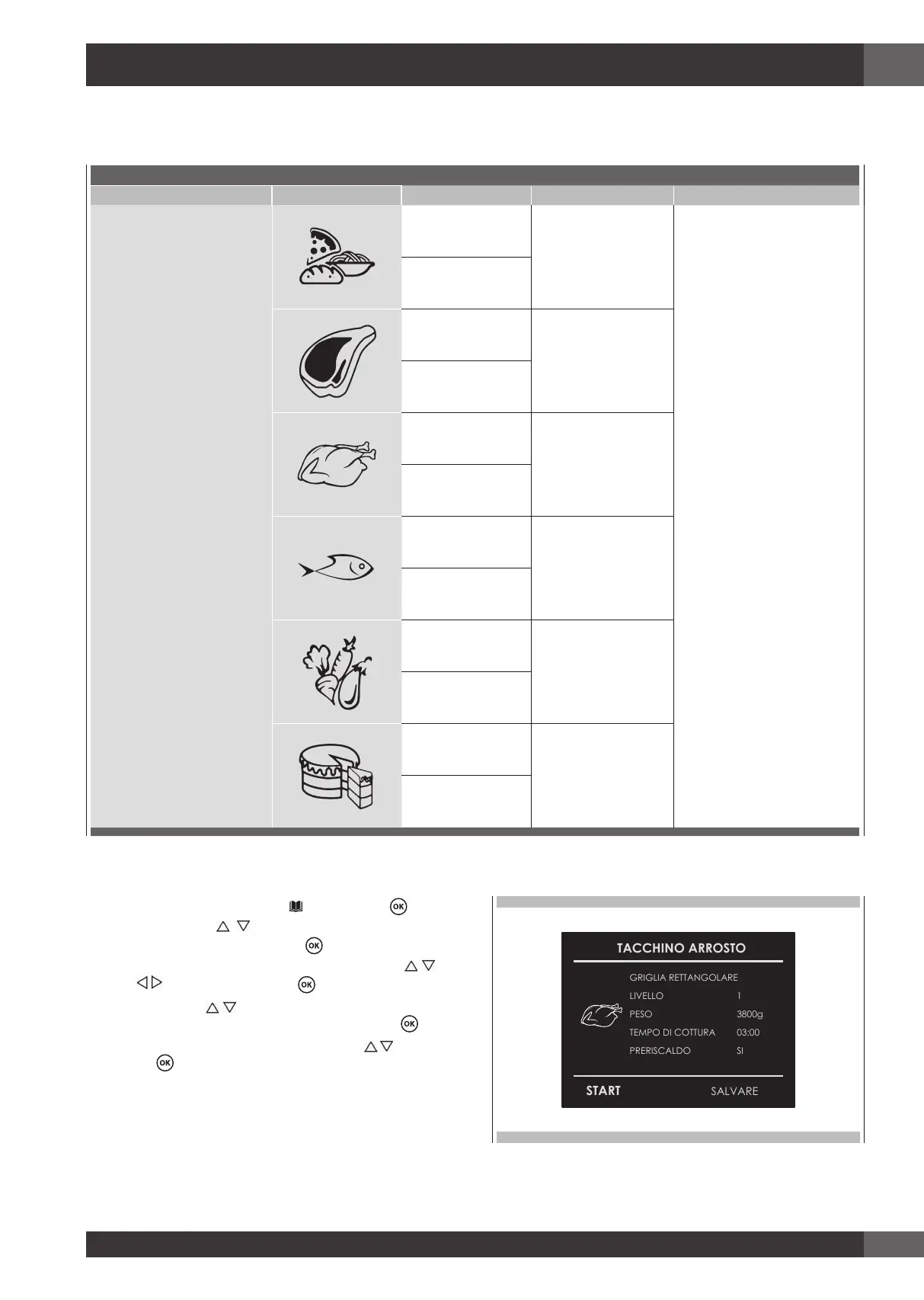 3. Scegliere il tipo di alimento da cuocere utilizzando le frecce