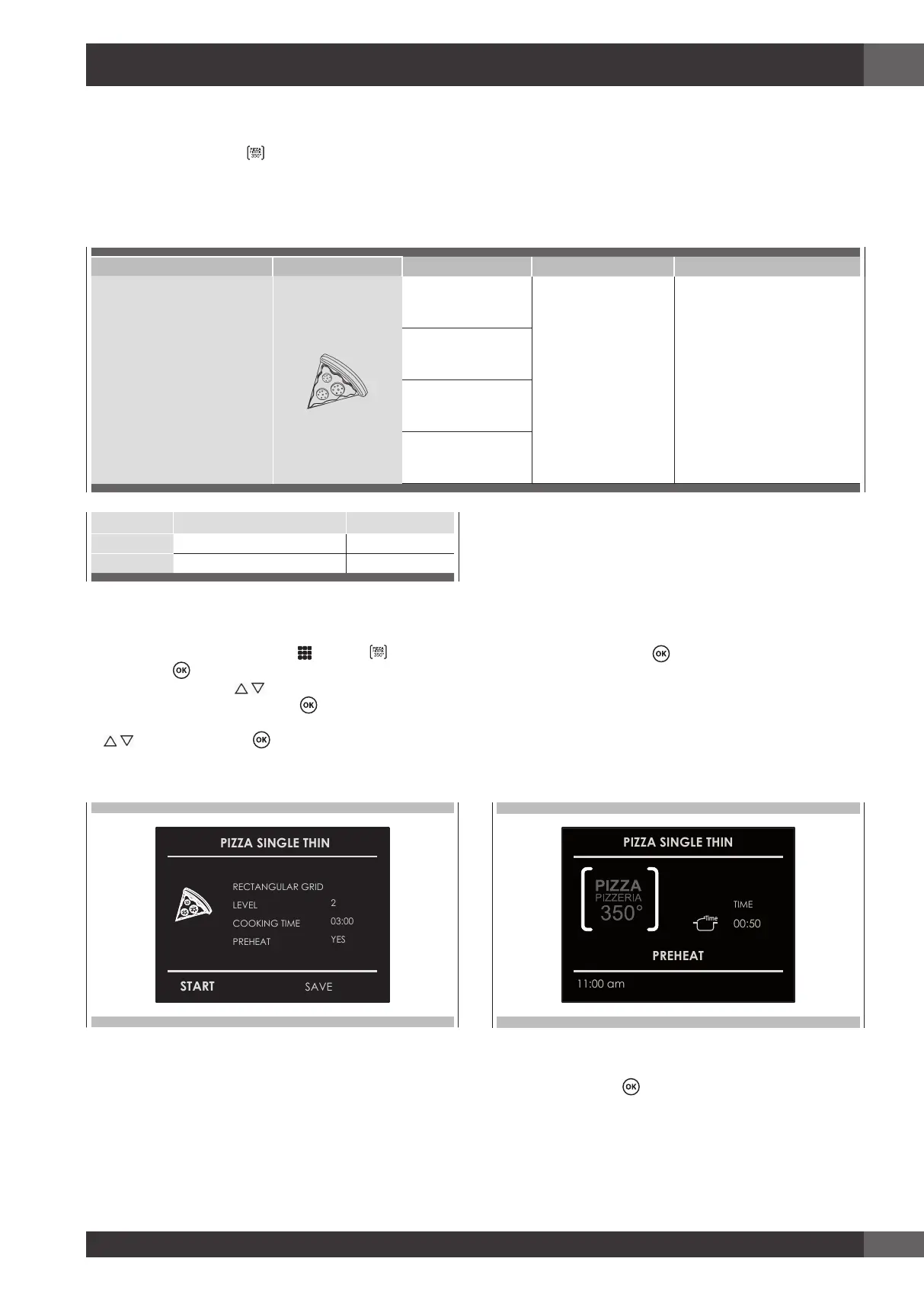 3. Choose the type of pizza to be cooked by means of the arrows