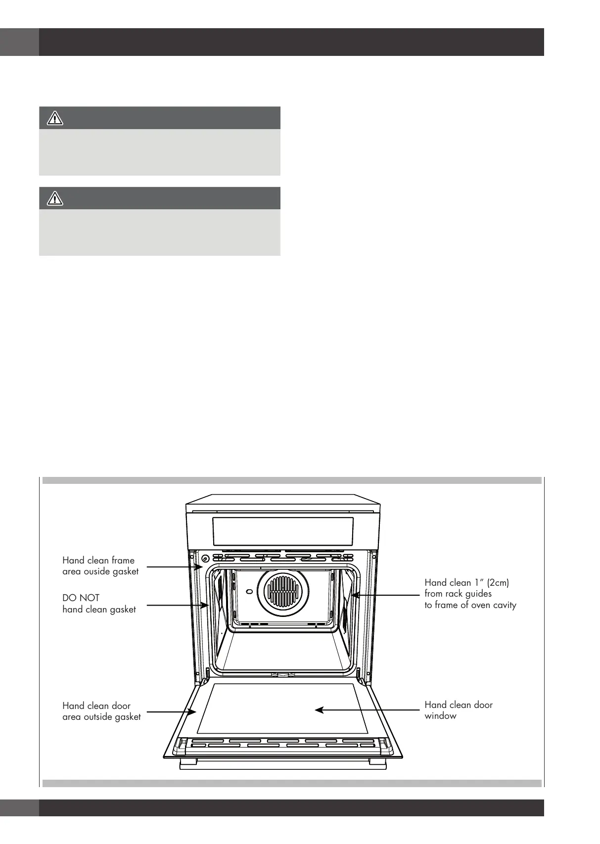 plastic scrubber. Hand-clean the oven door edge, oven front frame