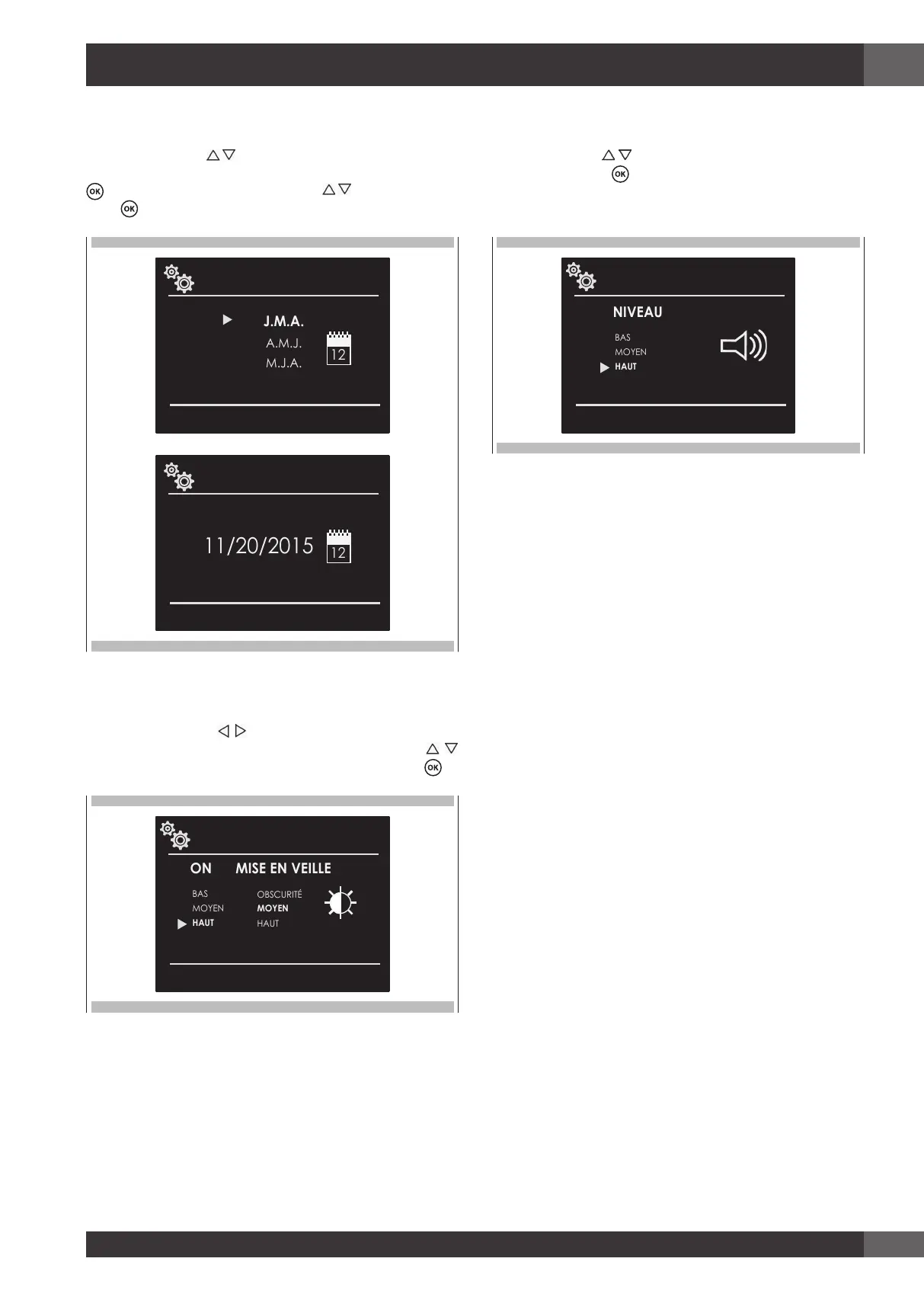 options disponibles : “J.M.A. – A.M.J. – M.J.A.”, puis confirmer avec la touche