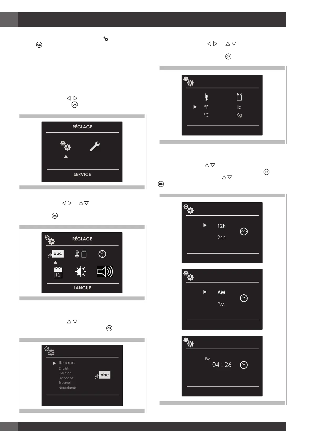 Enfoncer la touche flèche pour sélectionner le format de l'heure