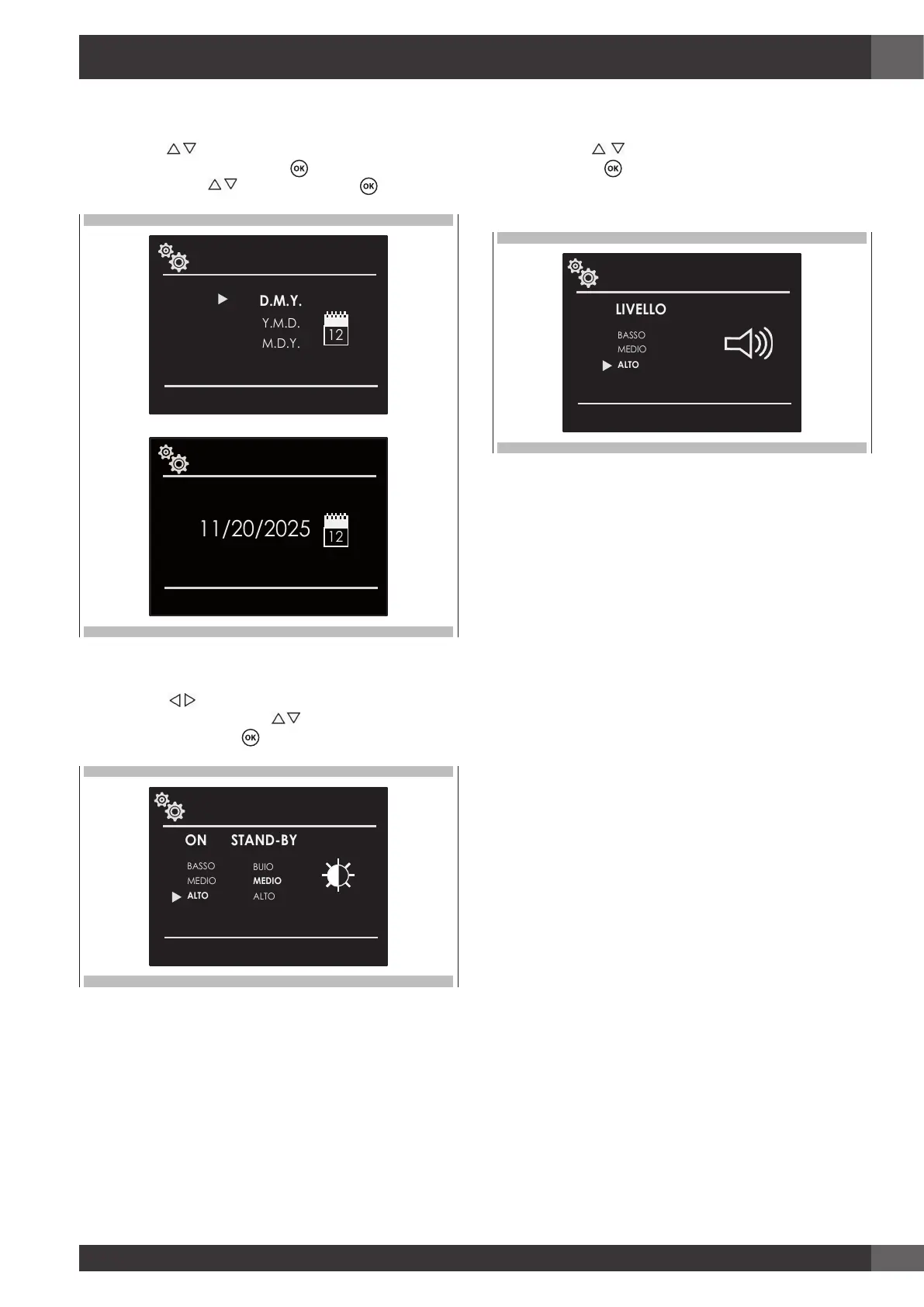 Premere la freccia per scegliere quale impostazione luminosità cambiare