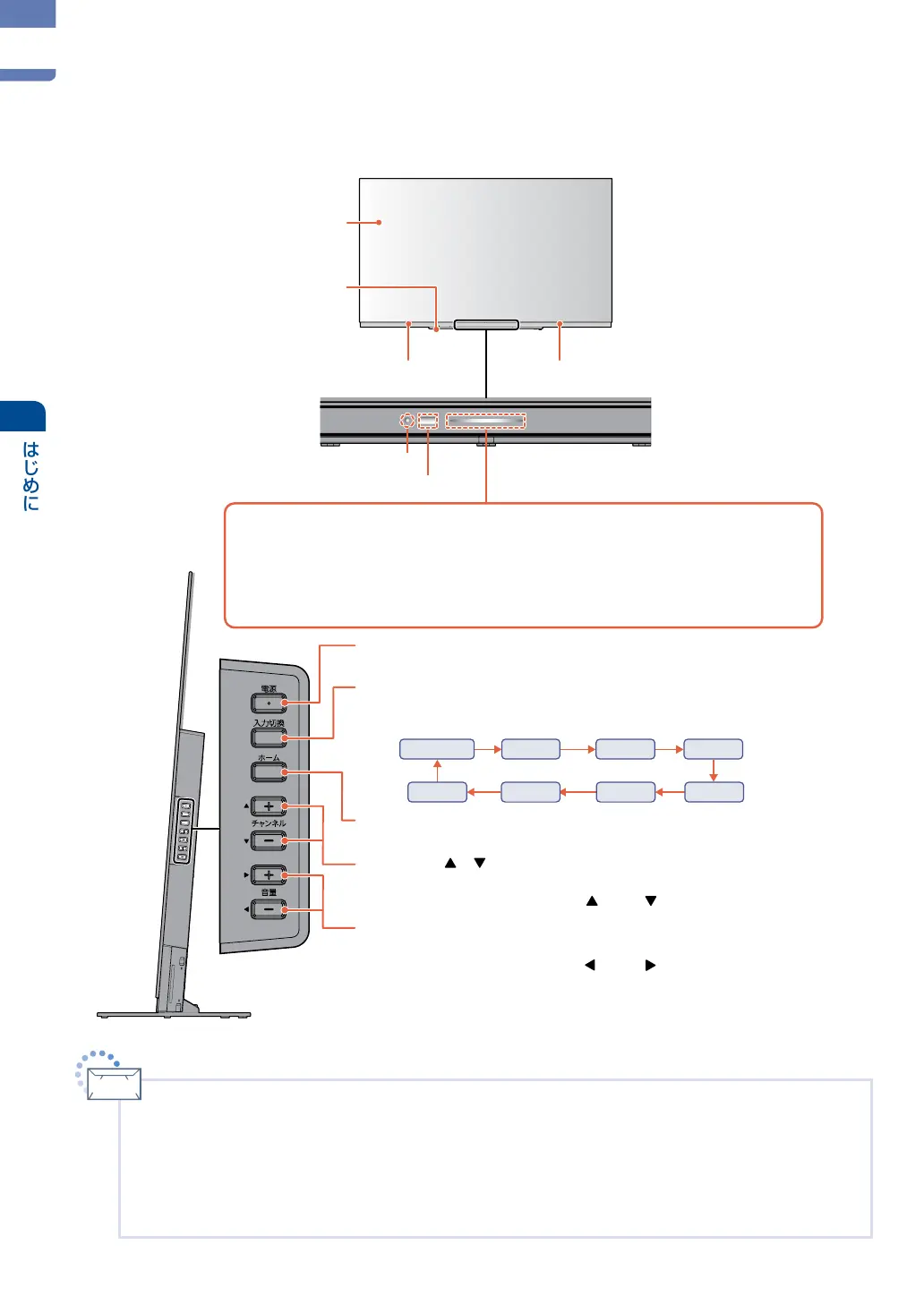 メニュー画面表示中はリモコンの または と同じはたらきをします。