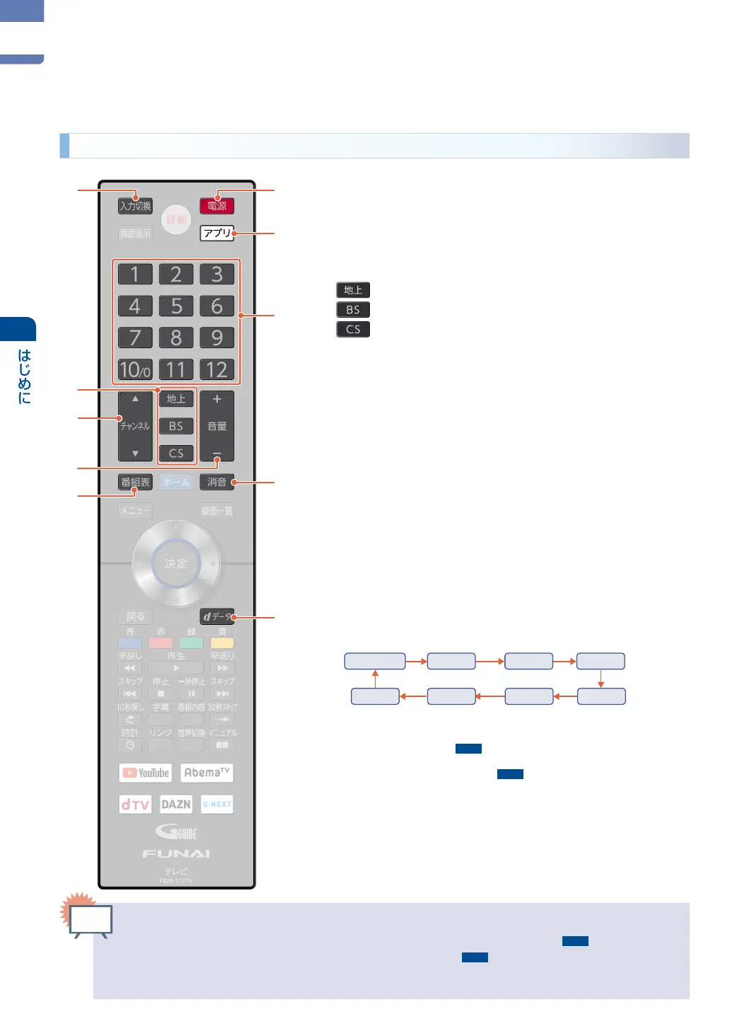 チャンネルボタンを押すと、視聴している放送の種類の中で