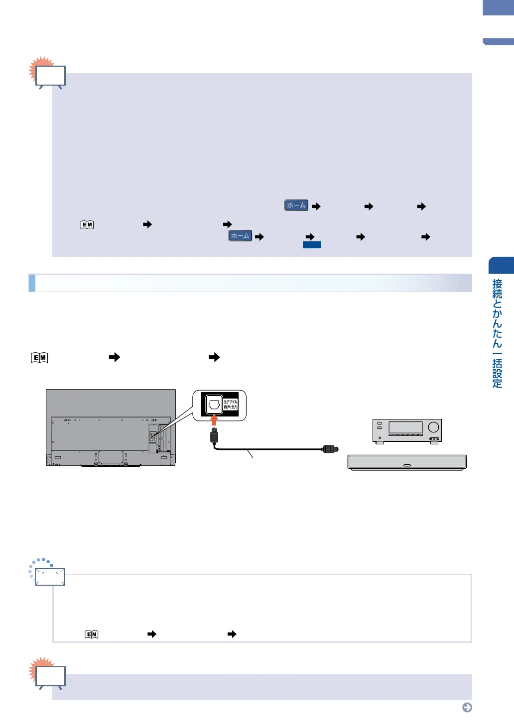 接続後は、接続先に合わせて[デジタル音声出力]の設定が必要です。