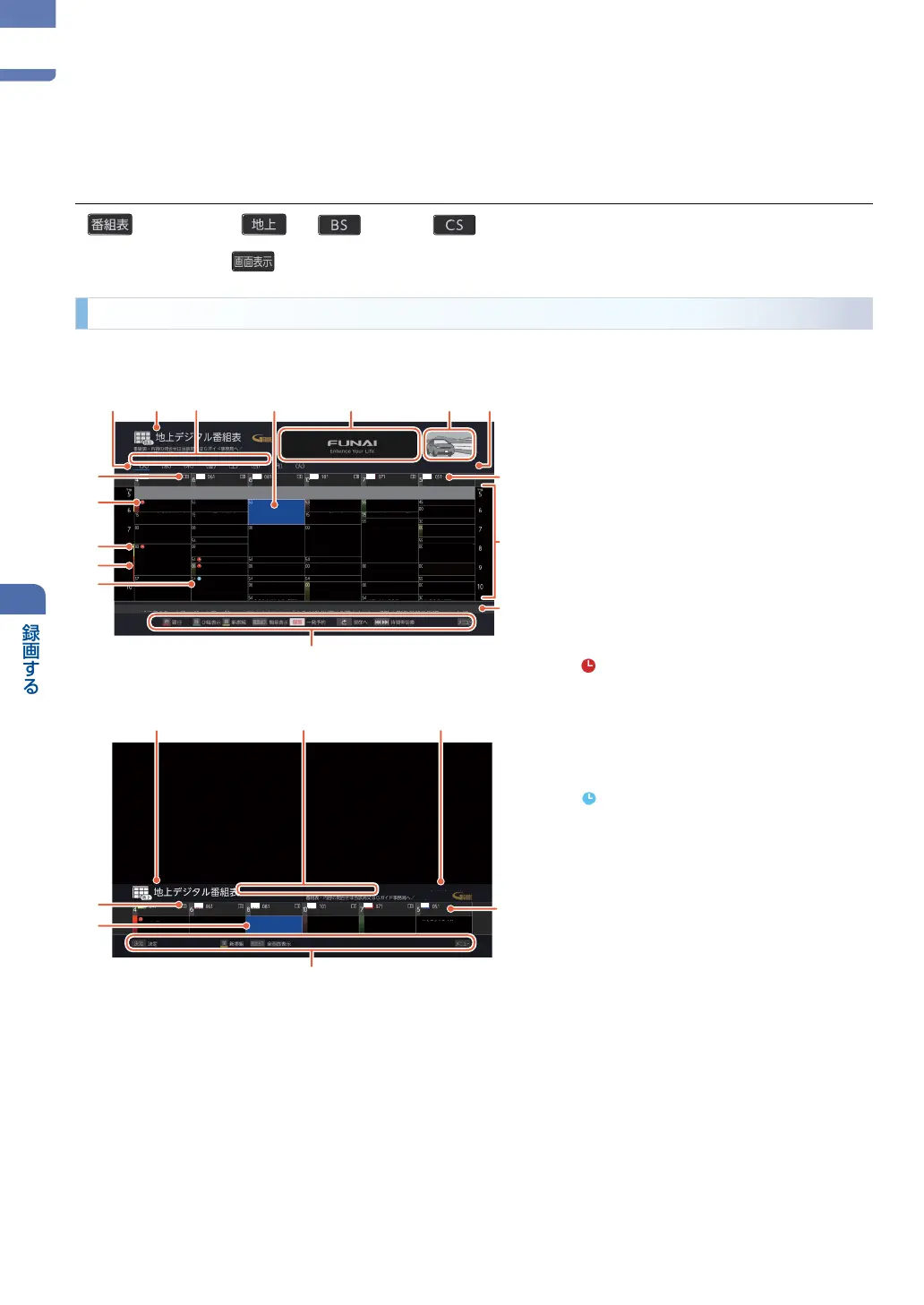 地上デジタル放送、BSデジタル放送、110度CSデジタル放送の番組表を表示することができます。