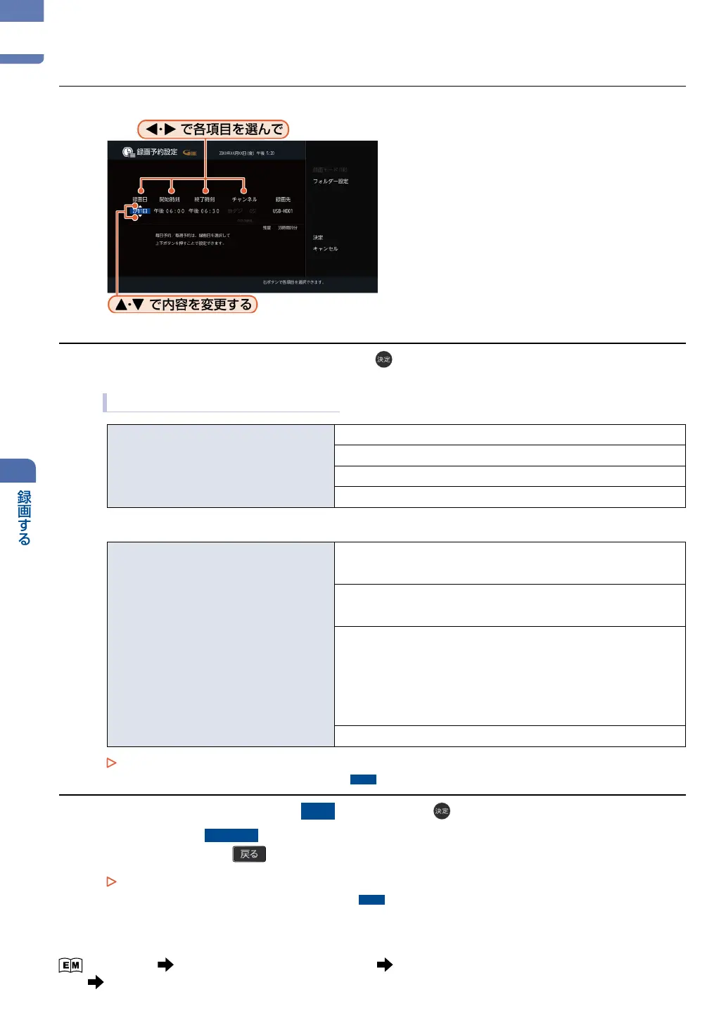 「録画する」 「録画予約を確認・変更・消去する」 「設定済みの録画予約の内容を変更する」