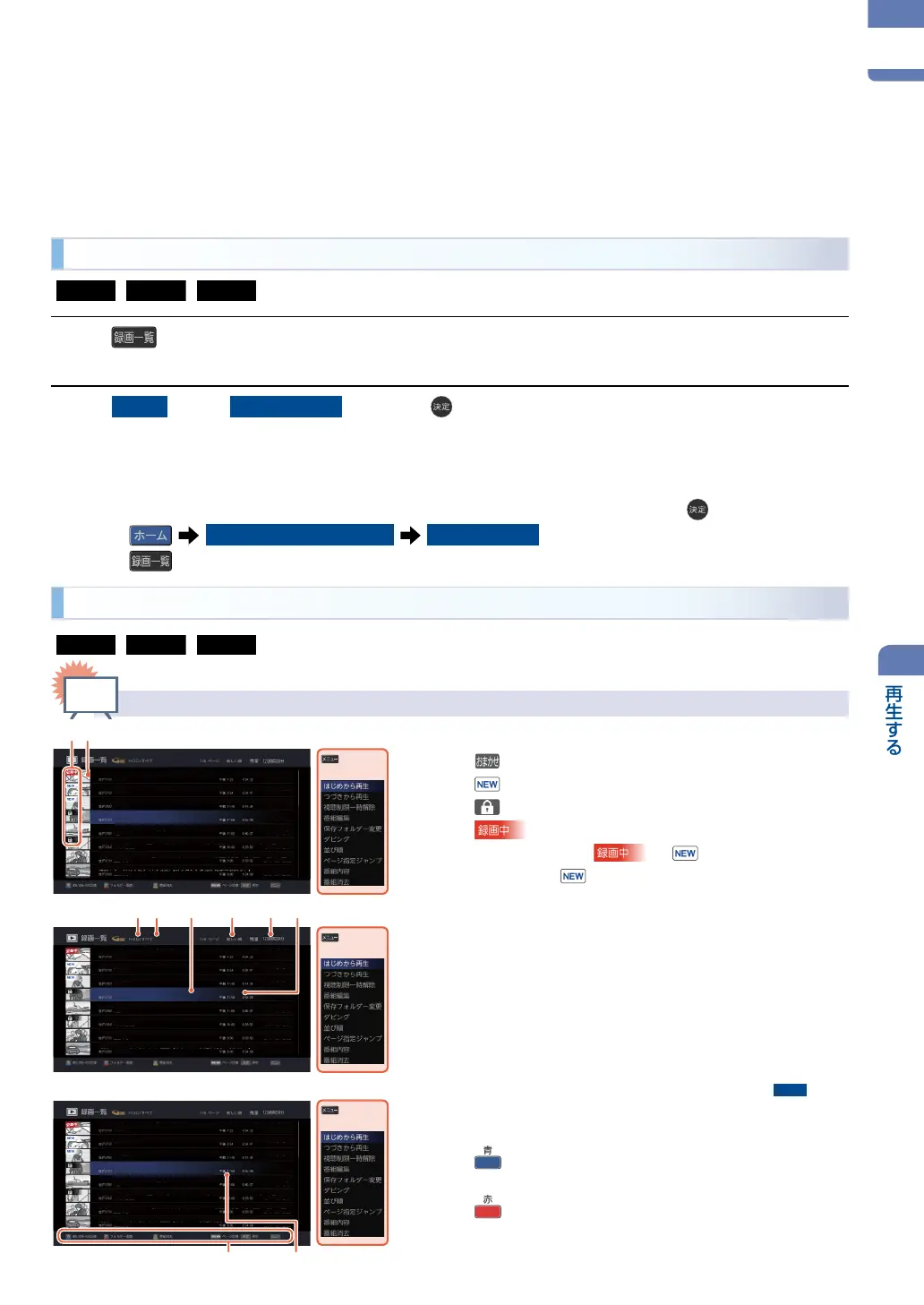 録画した番組を見るときは、録画一覧を表示させて見たい番組を選んでください。