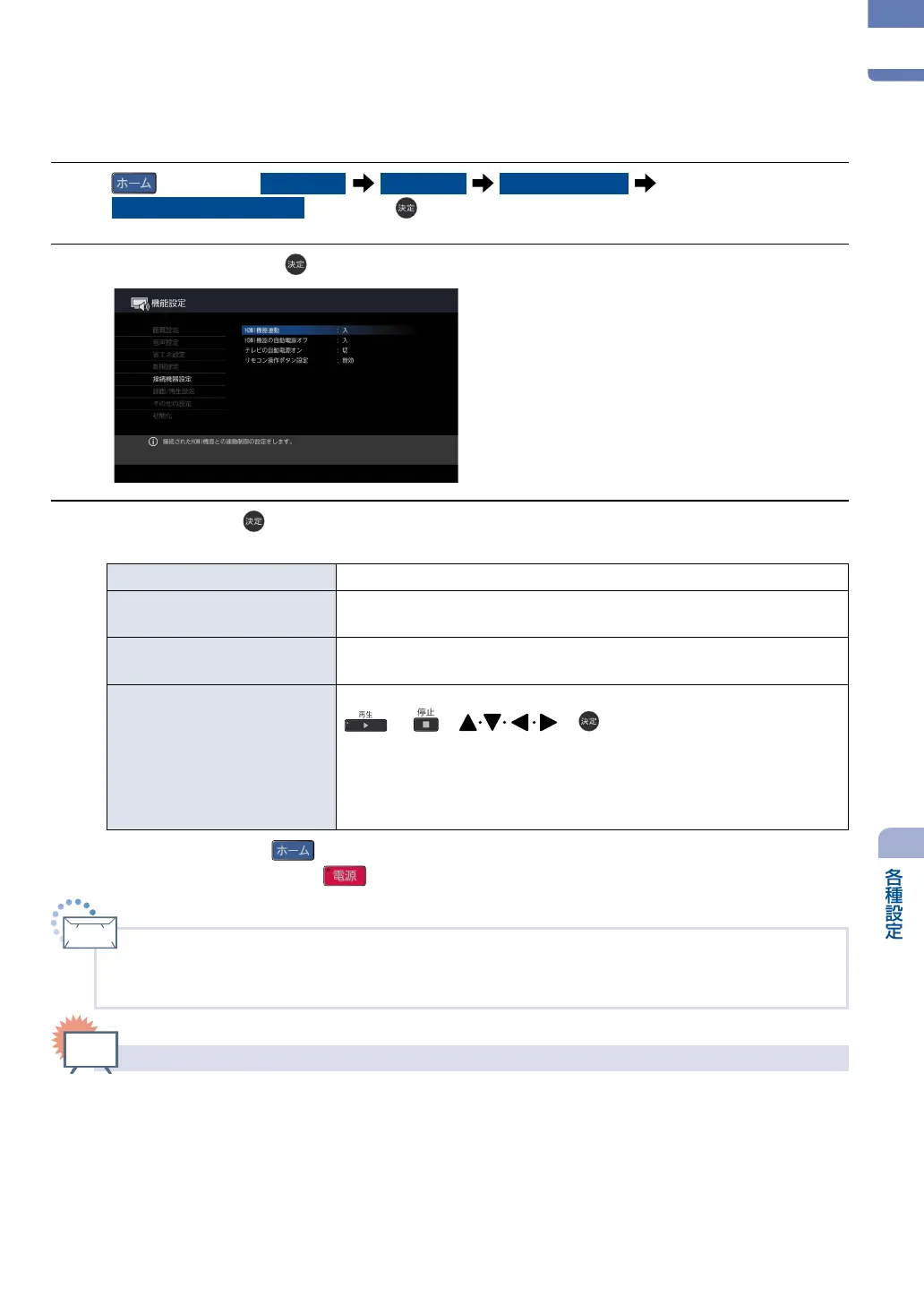 機器により仕様が異なる場合があります。くわしくはHDMI-CEC対応機器の取扱説明書をご覧ください。