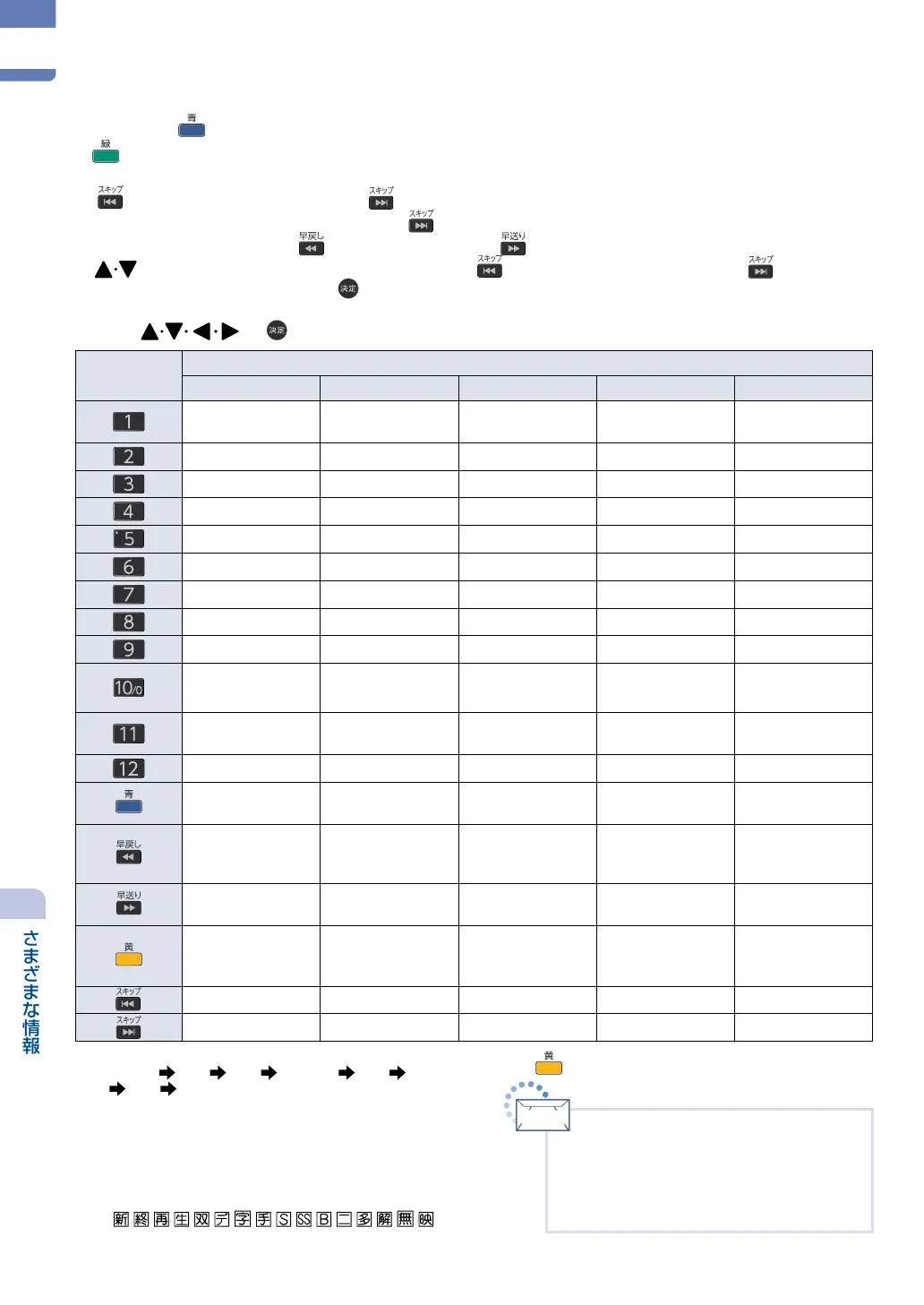 文字入力に使うボタンと入力できる文字の種類は以下になります。
