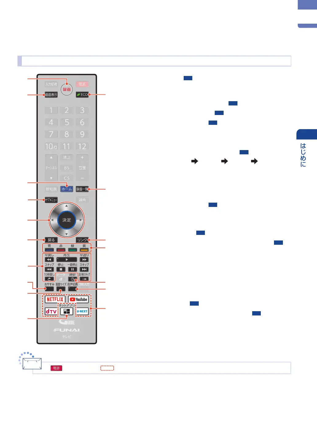 以外でも、上の図の で囲われているボタンを押して本機の電源を入れることができます。