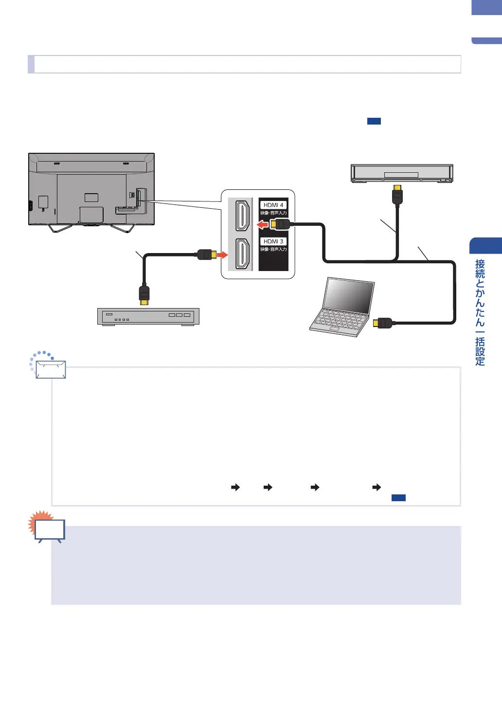 HDMI 対応機器の接続や操作については、その機器の取扱説明書をご覧ください。また、HDMI-CEC 対応機器は製品ご