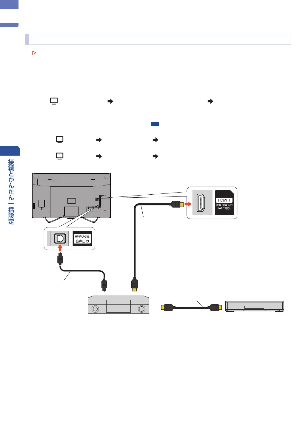 アンプ、サウンドバーなど)を HDMI ケーブル 1 本で接続して、映像と