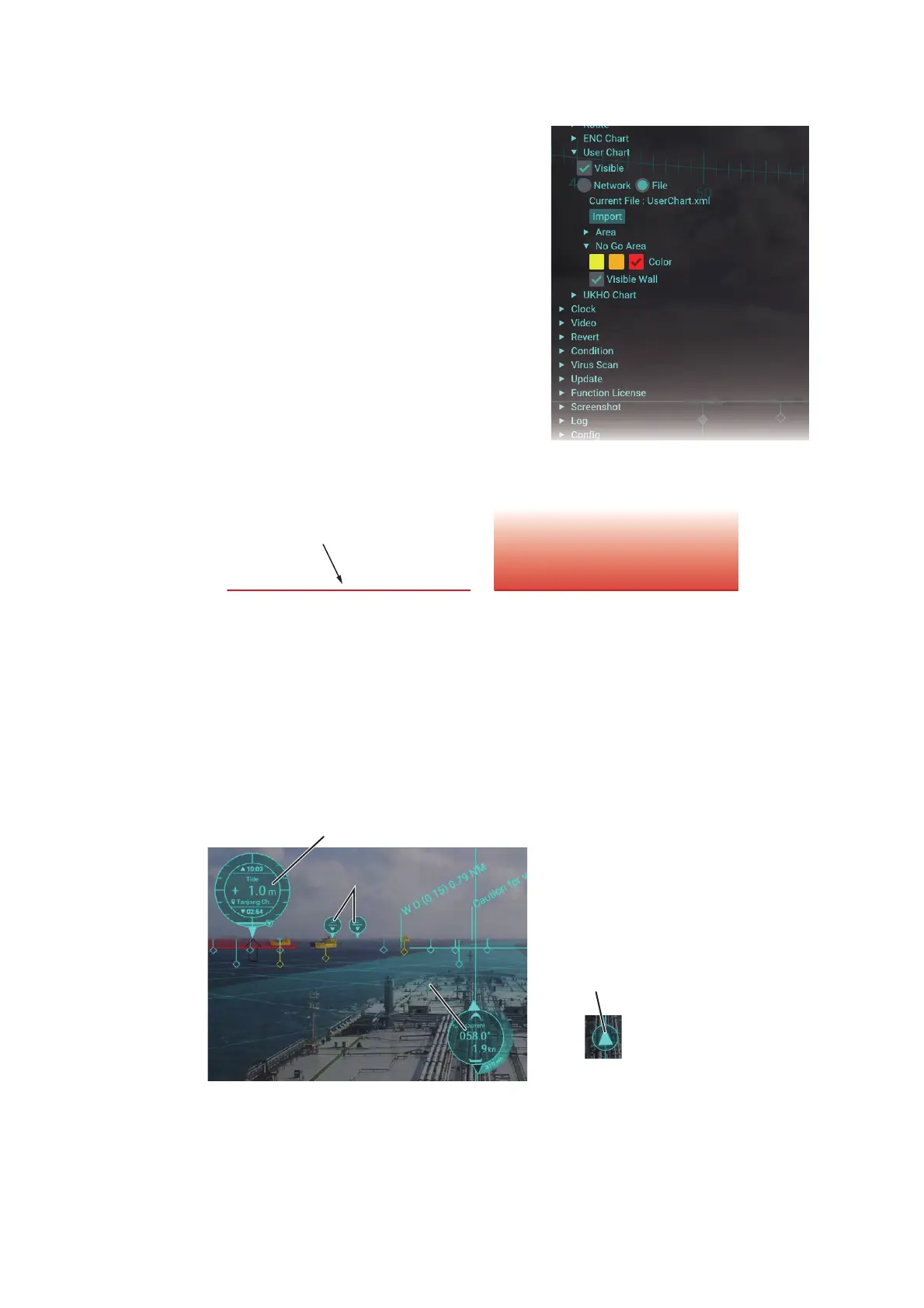 The AR navigation system can show the UKHO charts (current and tide information)